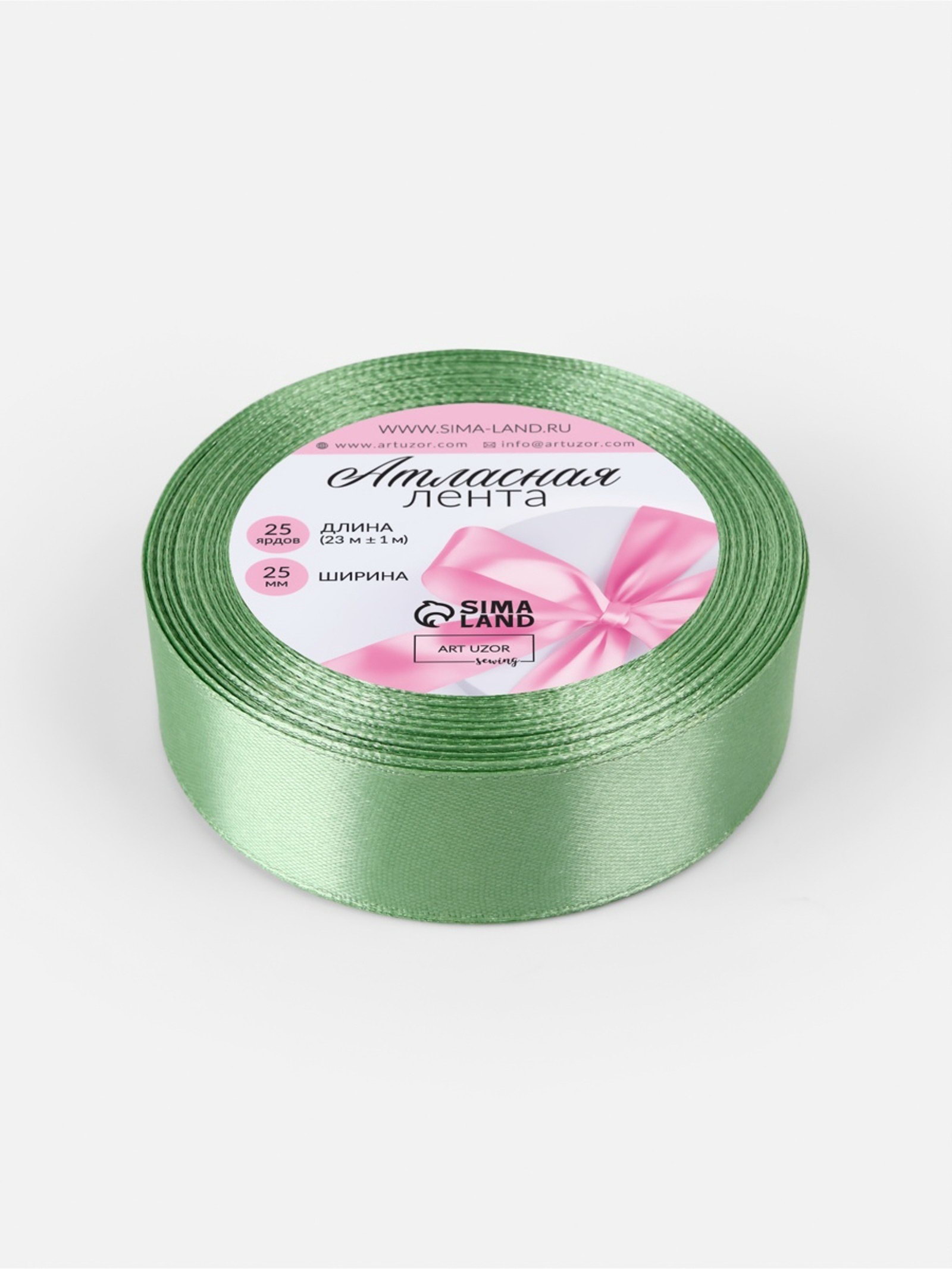 Лента атласная, 25 мм, 23+-1 м, нежно-зелёная №65, 9x9x2.5 см., Арт Узор, Китай