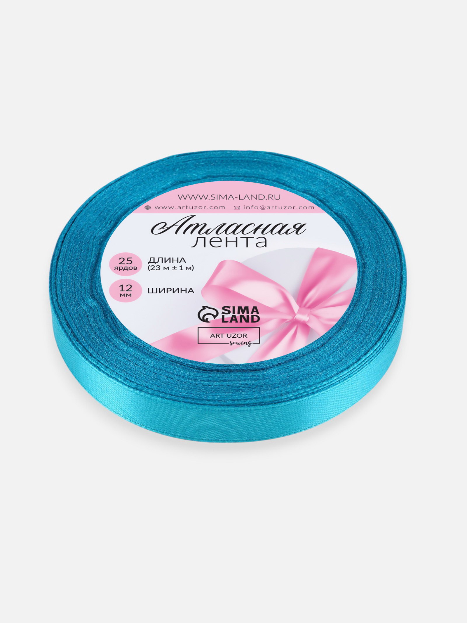 Лента атласная, 12 мм, 23+-1 м, голубая №47, 9x9x1.2 см., Арт Узор, Китай