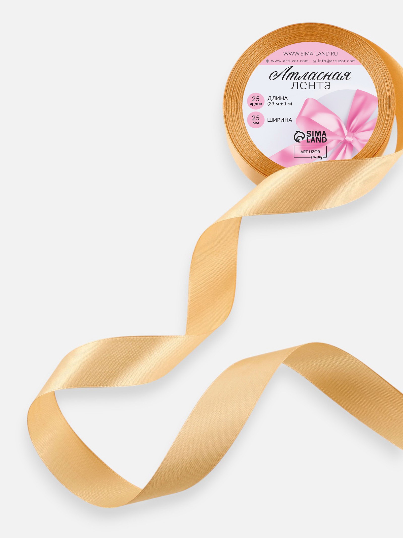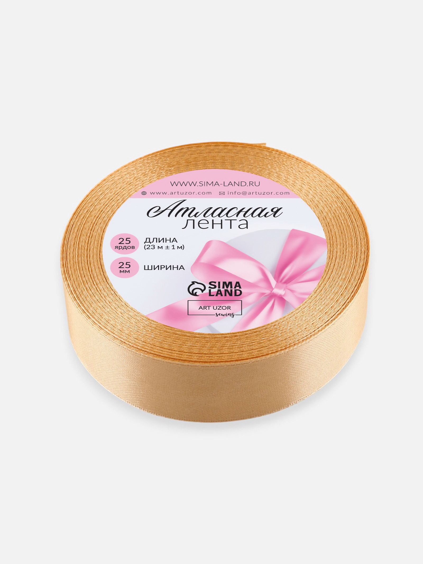 Лента атласная, 25 мм, 23+-1 м, бежевая №155, 9x9x2.5 см., Арт Узор, Китай