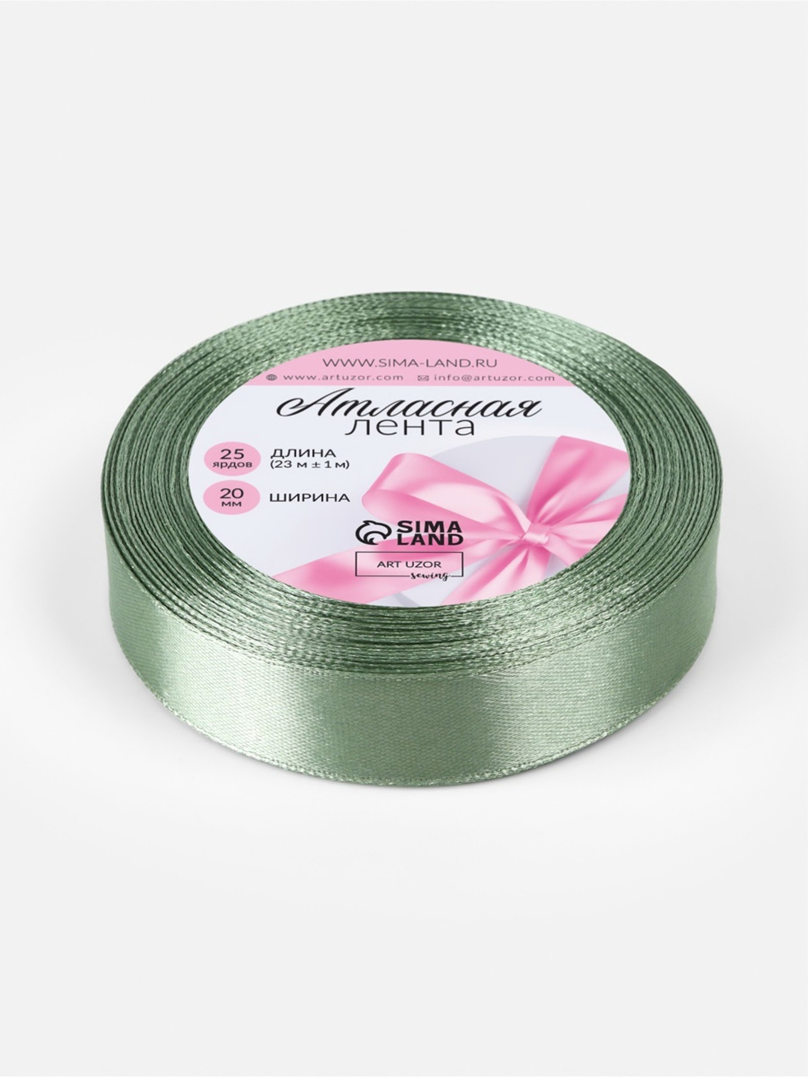 Лента атласная, 20 мм, 23+-1 м, нежно-зелёная №65, 9x9x2 см., Арт Узор, Китай