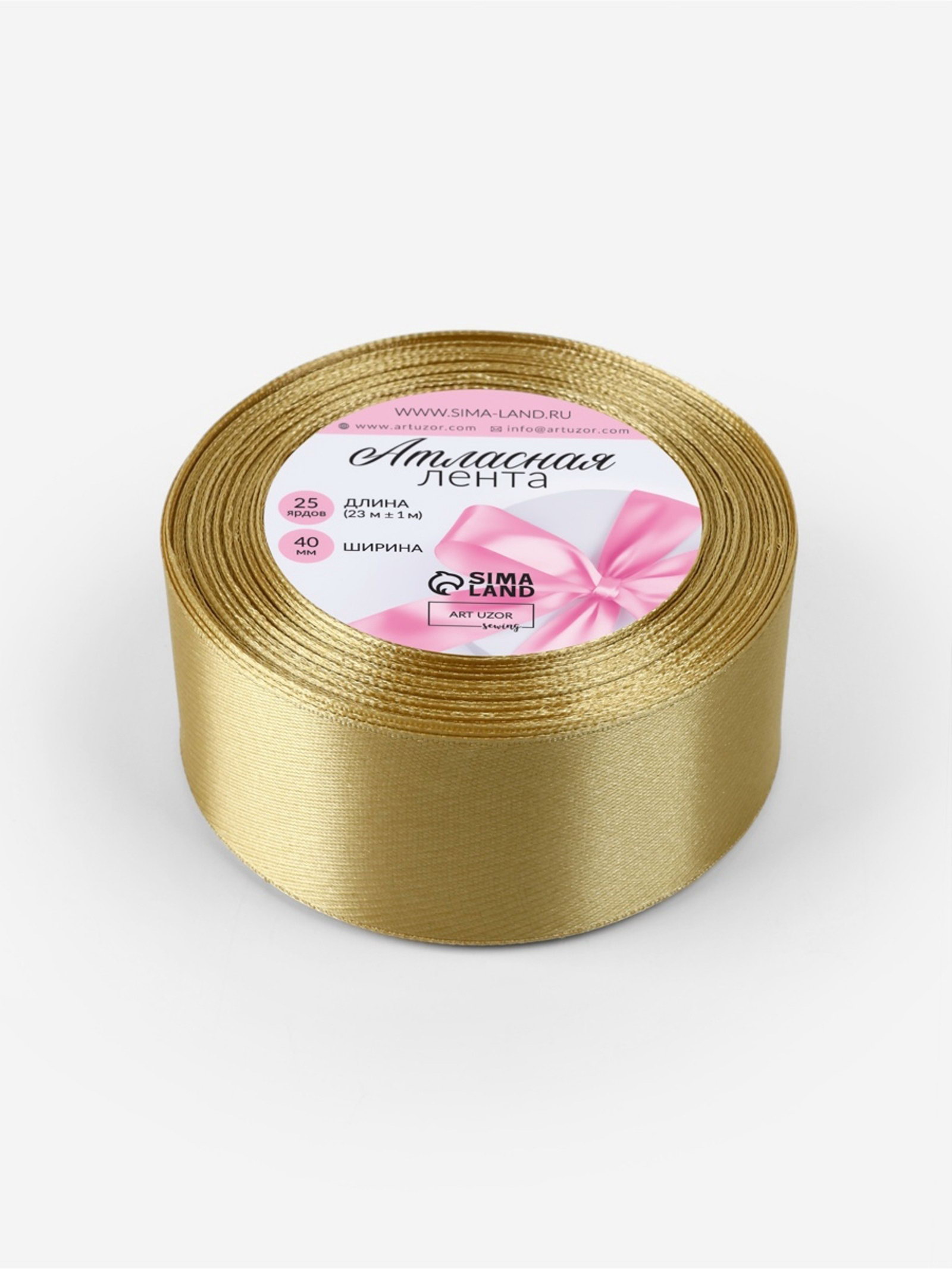 Лента атласная, 40 мм, 23+-1 м, цвет золотой №204, 9x9x4 см., Арт Узор, Китай