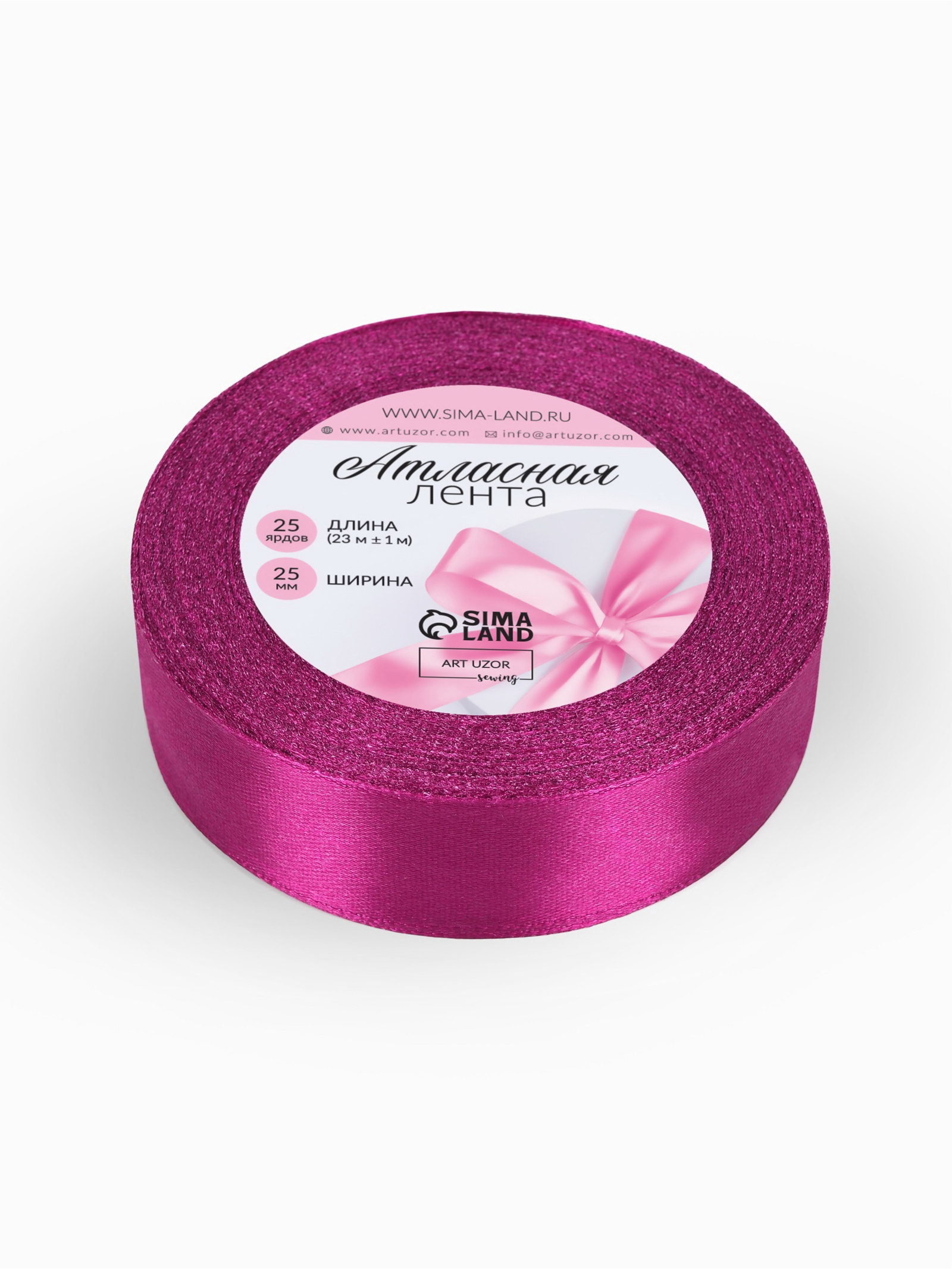 Лента атласная, 25 мм, 23+-1 м, пурпурно-фиолетовая №29, 9x9x2.5 см., Арт Узор, Китай