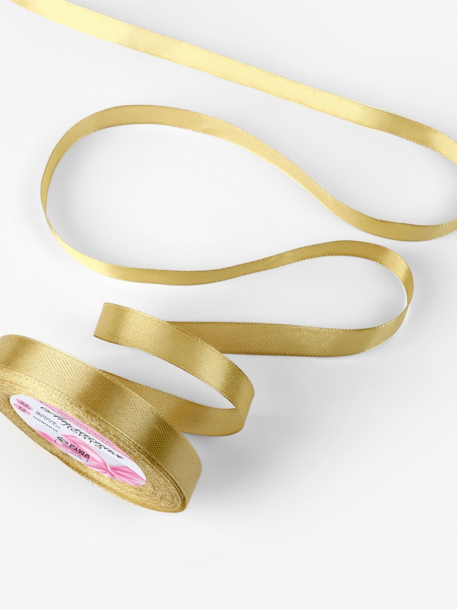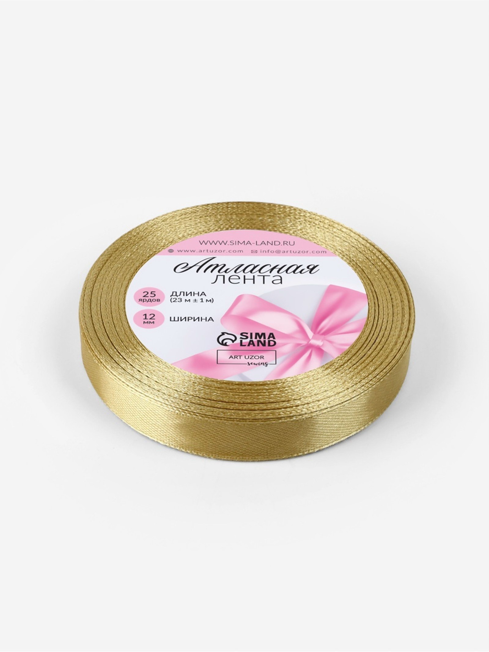Лента атласная, 12 мм, 23+-1 м, цвет золотой №204, 9x9x1.2 см., Арт Узор, Китай