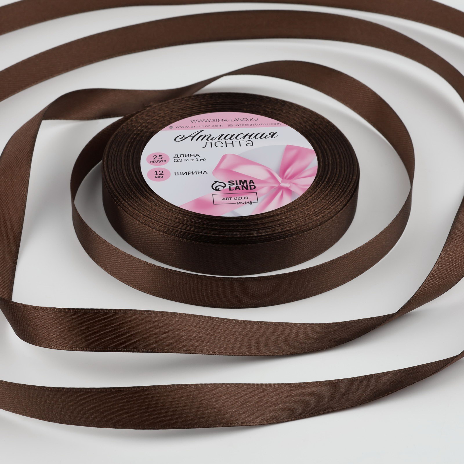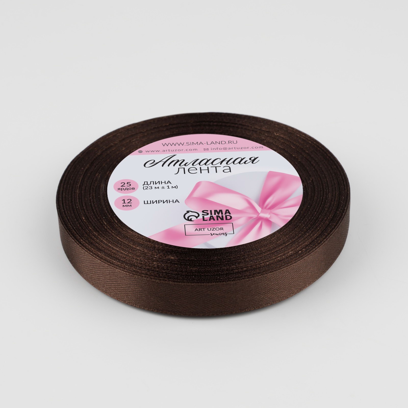 Лента атласная, 12 мм x 23 +- 1 м, цвет шоколадный №31, 9x9x1.2 см., Арт Узор, Китай