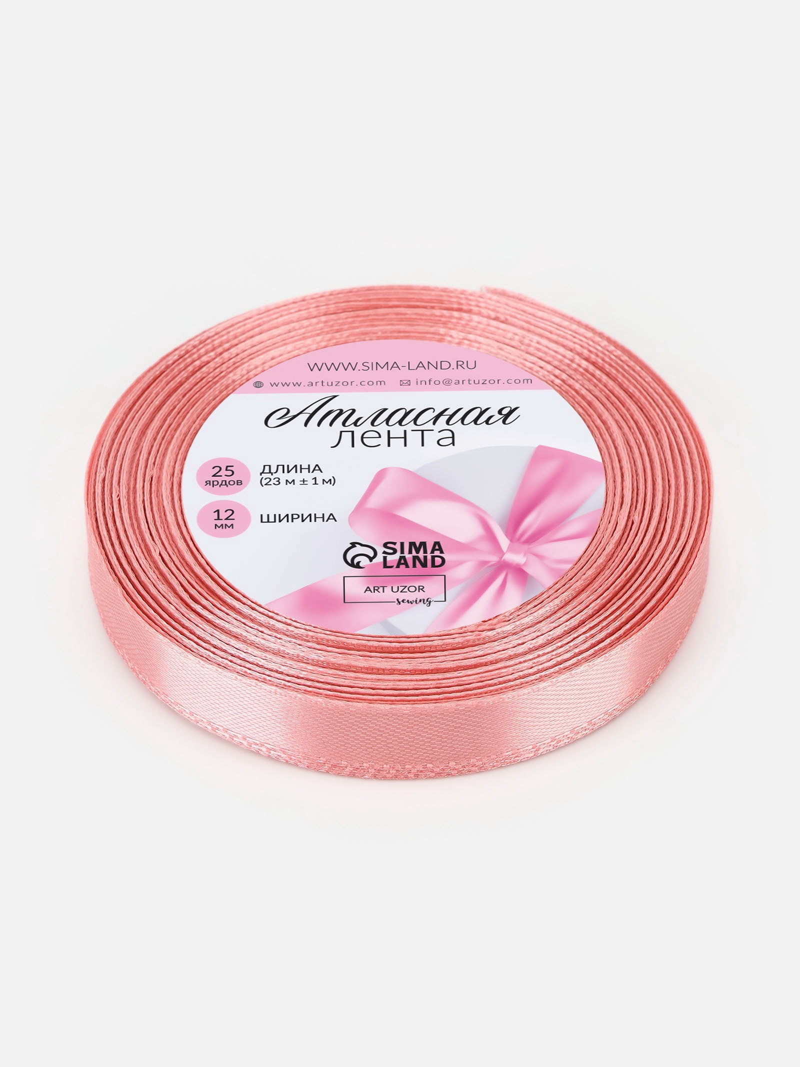 Лента атласная, 12 мм, 23+-1 м, пастельно-розовая, 9x9x1.2 см., Арт Узор, Китай