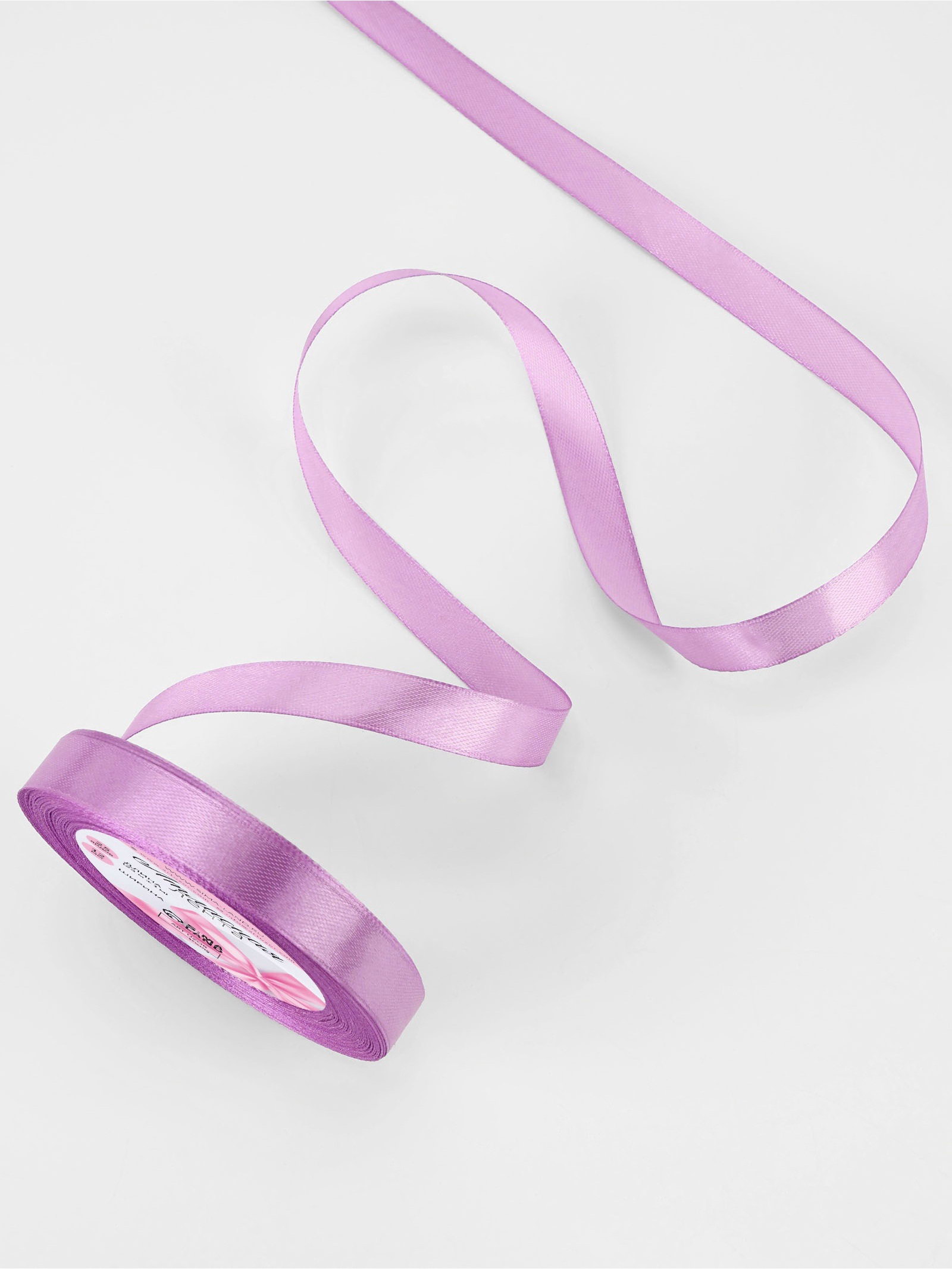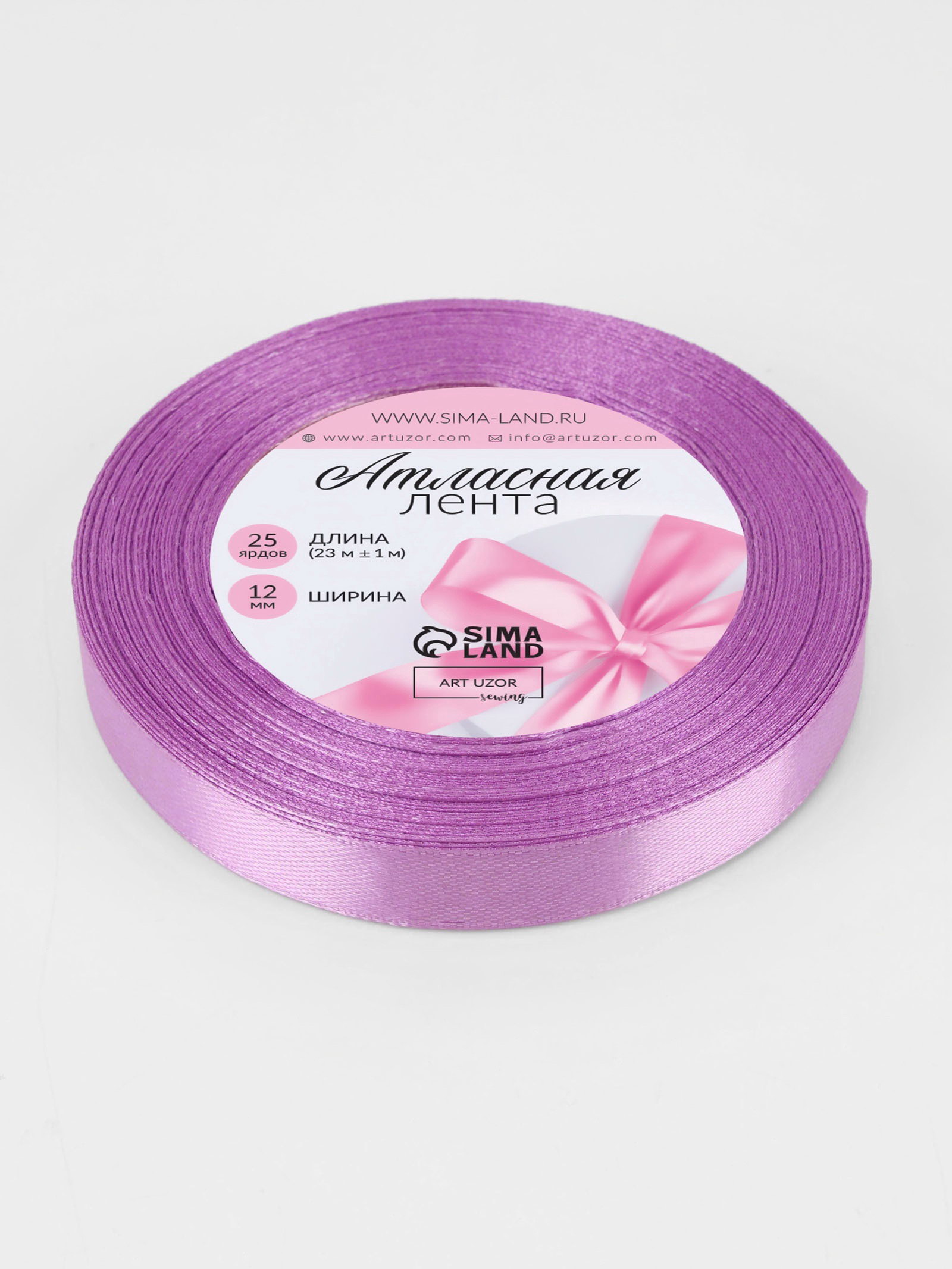 Лента атласная, 12 мм, 23+-1 м, светло-сиреневая, 9x9x1.2 см., Арт Узор, Китай