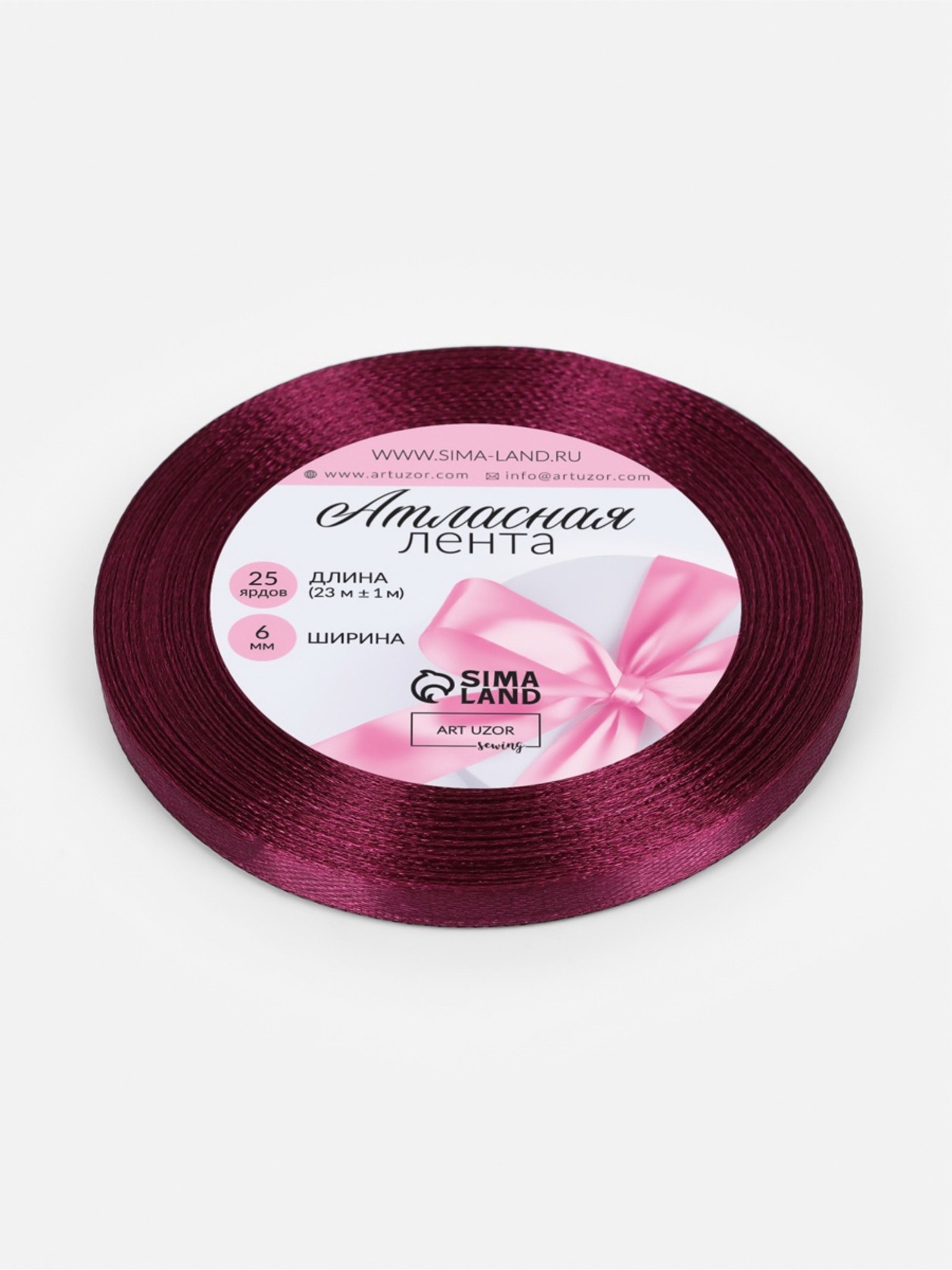 Лента атласная, 6 мм, 23+-1 м, фиолетовая №252, 9x9x0.6 см., Арт Узор, Китай