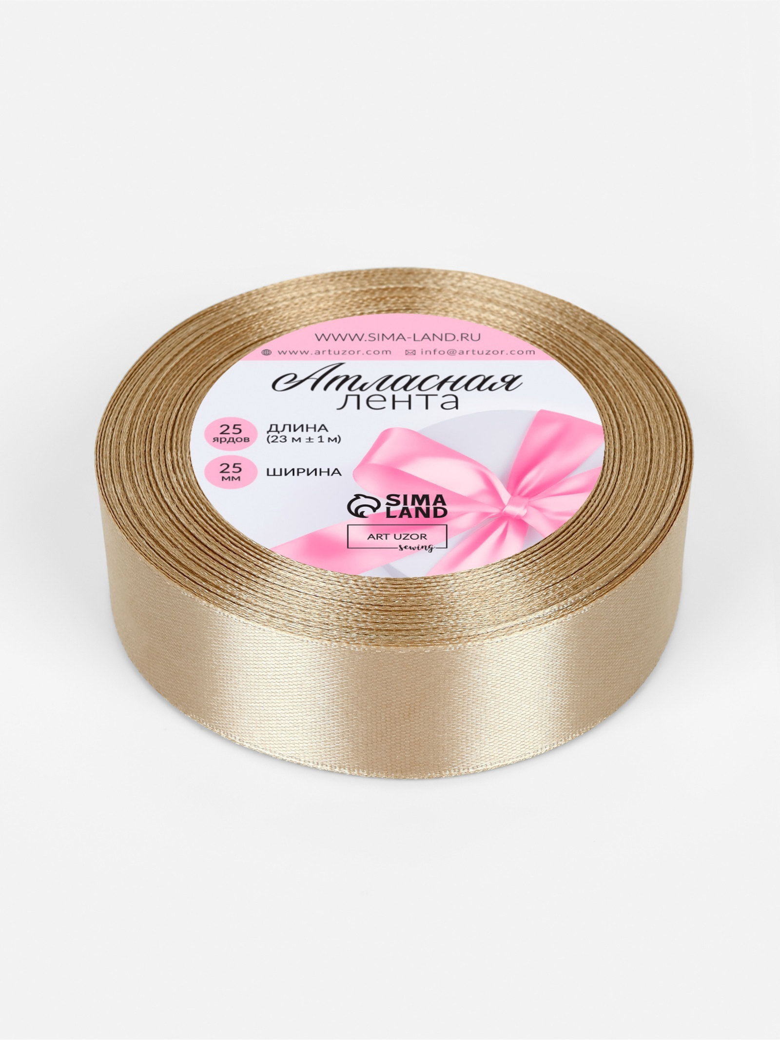 Лента атласная, 25 мм, 23+-1 м, тёмно-бежевая №268, 9x9x2.5 см., Арт Узор, Китай