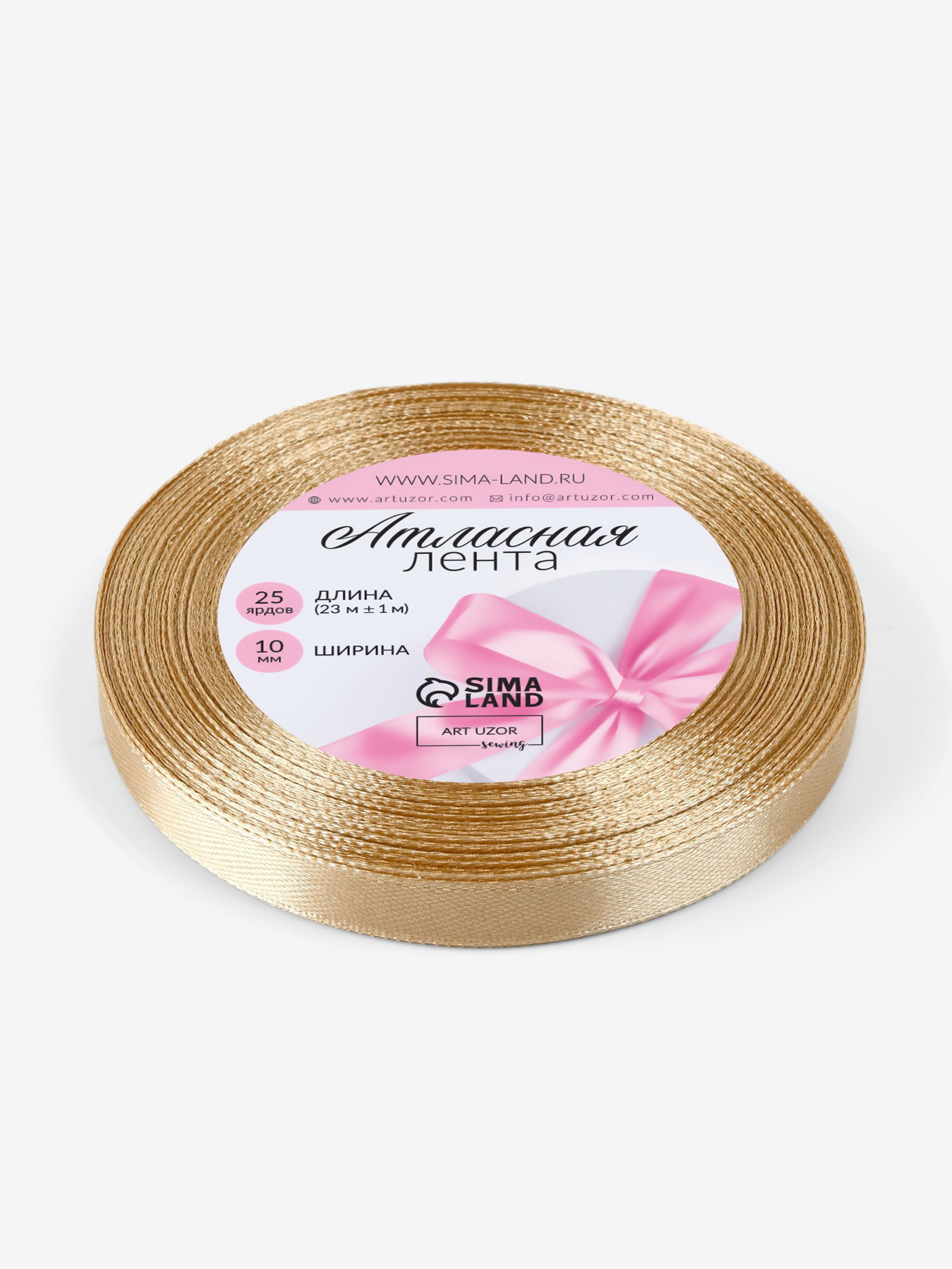 Лента атласная, 10 мм, 23+-1 м, золотисто-бежевая №186, 9x9x1 см., Арт Узор, Китай