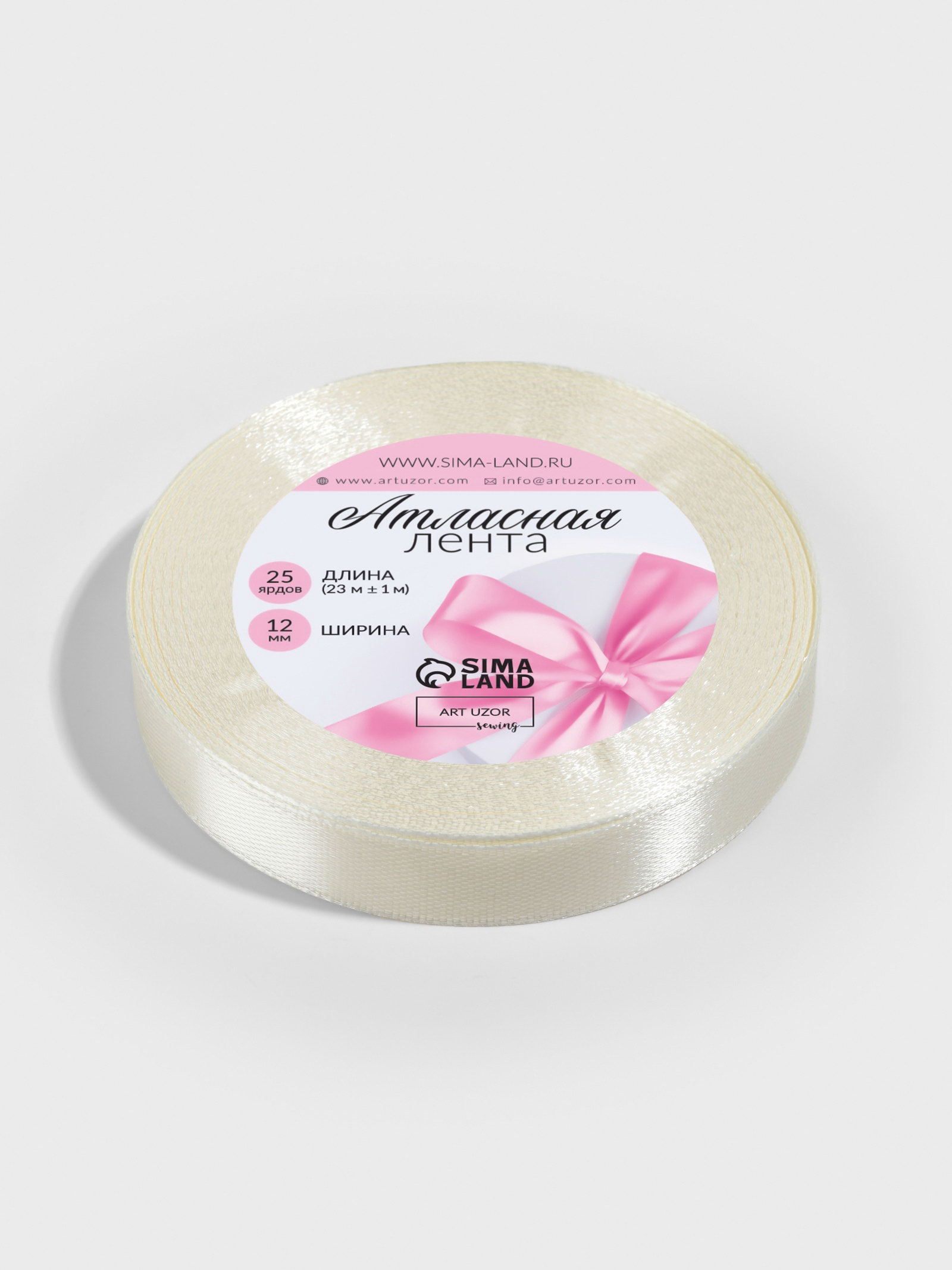 Лента атласная, 12 мм x 23+-1 м, сливочная №02, 9x9x1.2 см., Арт Узор, Китай