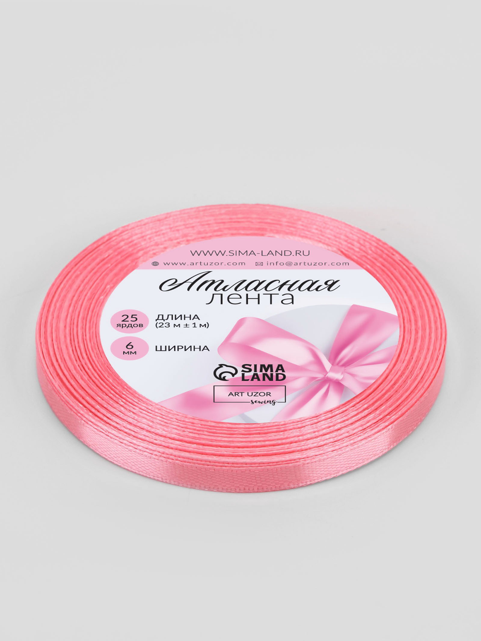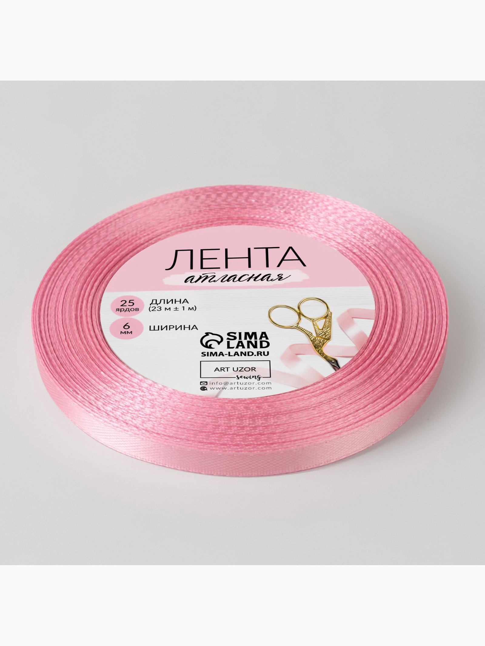 Лента атласная, 6 мм, 23+-1 м, нежно-розовая №147, 9x9x0.6 см., Арт Узор, Китай