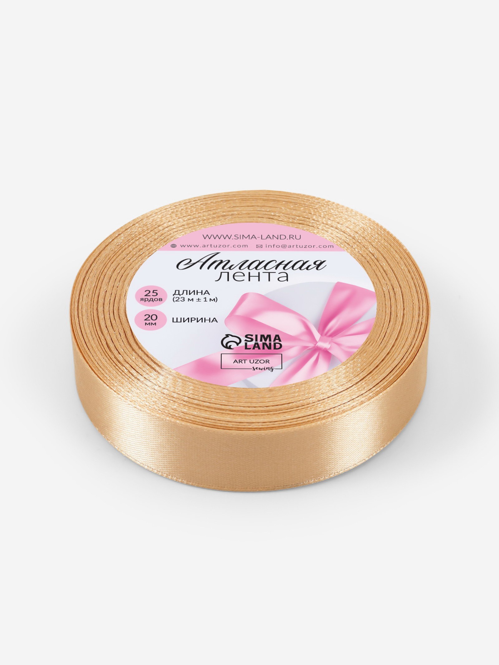Лента атласная, 20 мм x 23+-1 м, цвет шампань №123, 9x9x2 см., Арт Узор, Китай