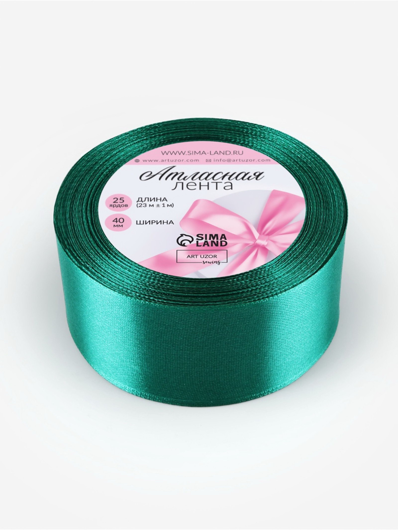 Лента атласная, 40 мм, 23+-1 м, зелёная, 9x9x4 см., Арт Узор, Китай