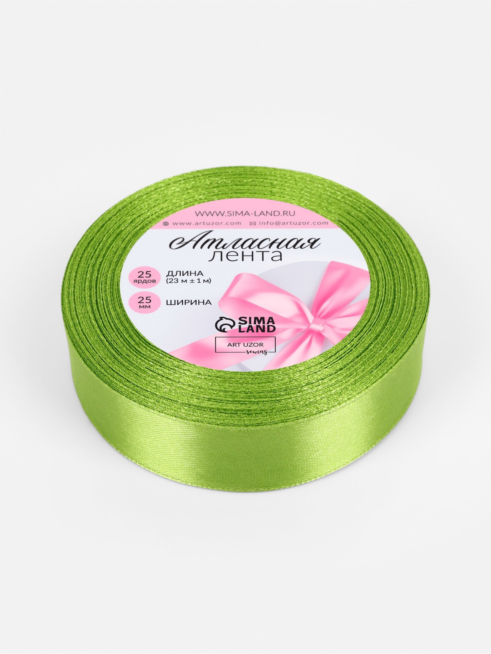 Лента атласная, 25 мм, 23+-1 м, светло-зелёная №184, 9x9x2.5 см., Арт Узор, Китай