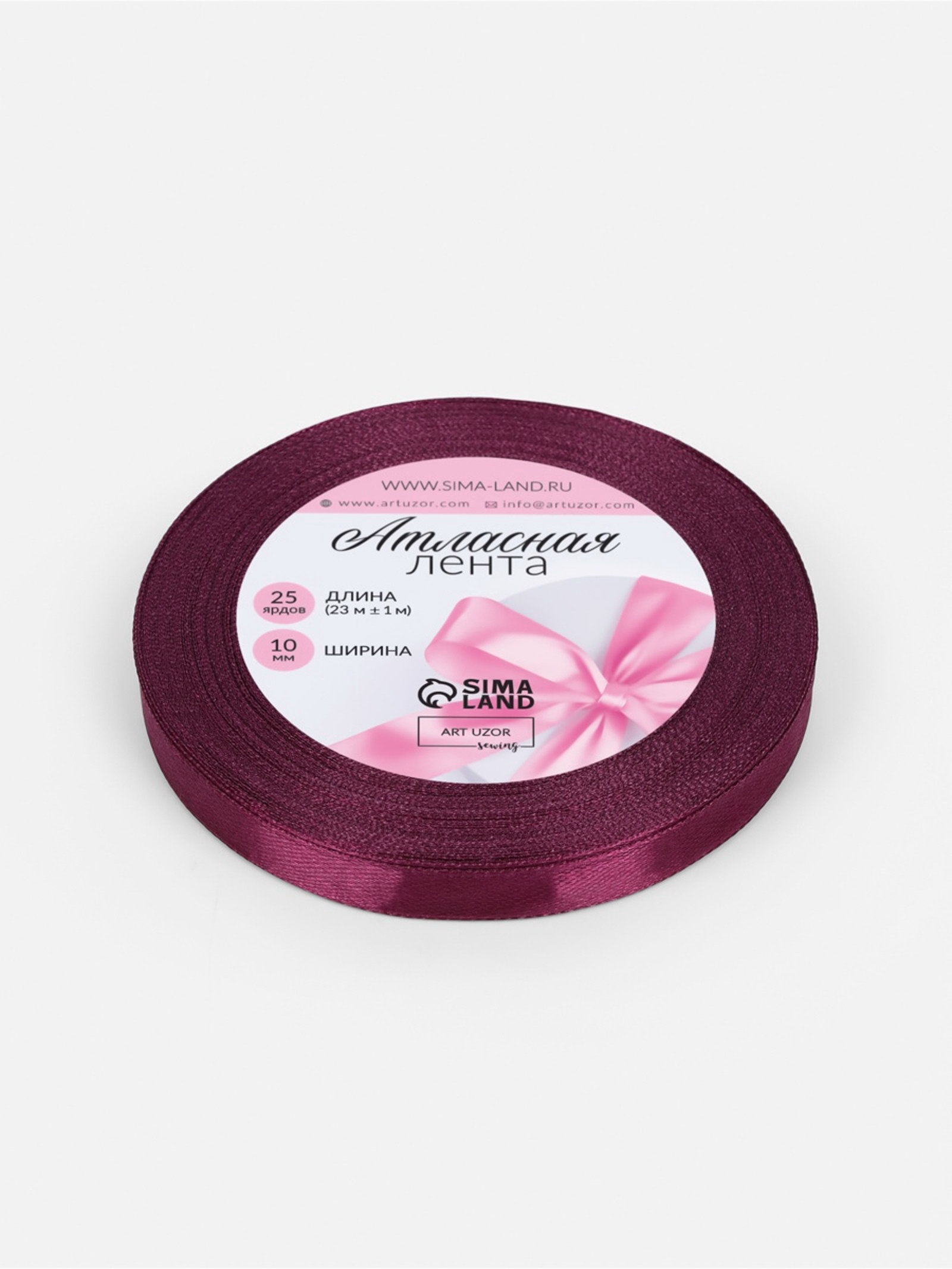 Лента атласная, 10 мм, 23+-1 м, фиолетовая №252, 9x9x1 см., Арт Узор, Китай