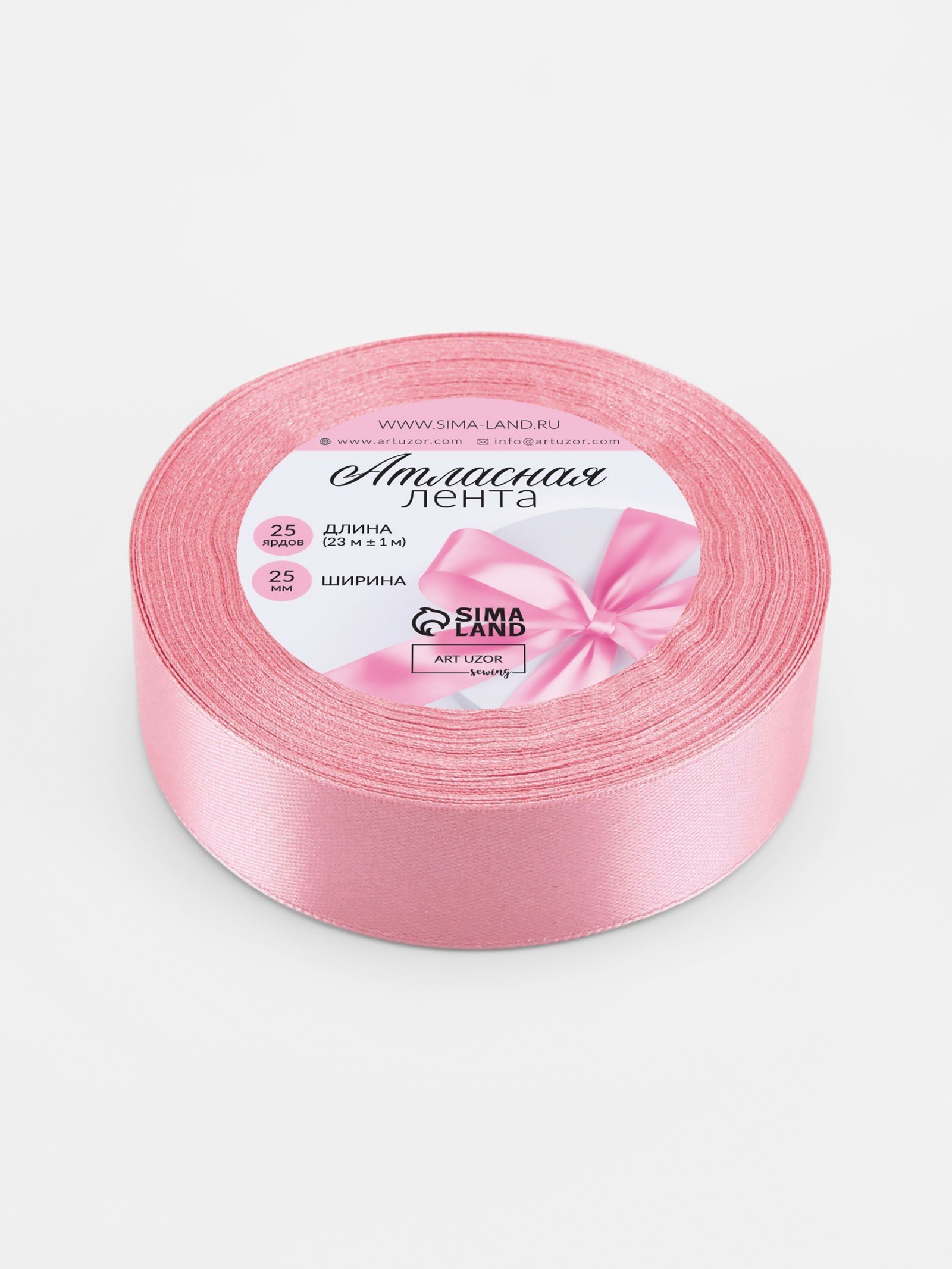 Лента атласная, 25 мм, 23+-1 м, пастельно-розовая, 9x9x2.5 см., Арт Узор, Китай