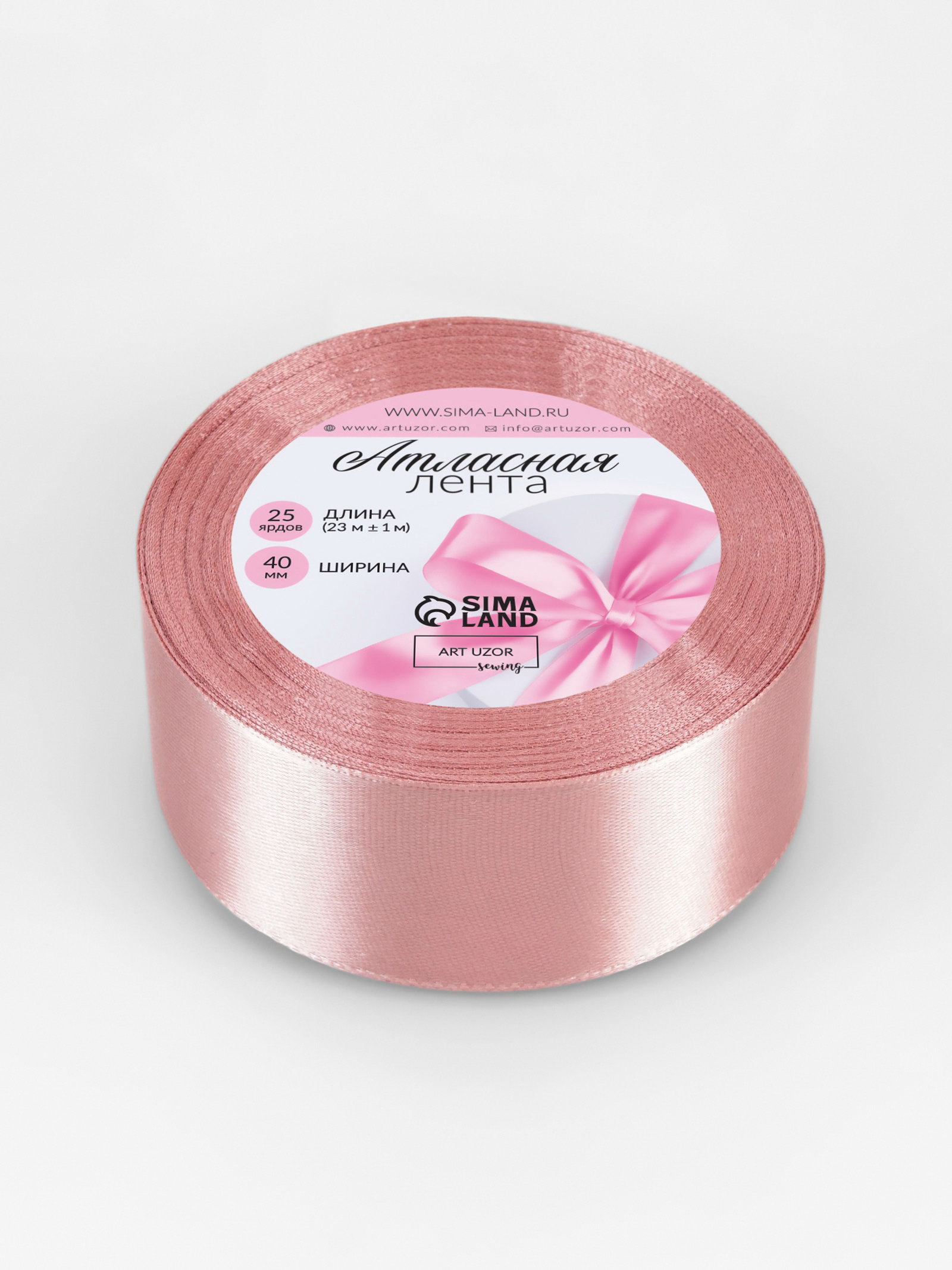 Лента атласная, 40 мм, 23+-1 м, цвет розовое золото, 9x9x4 см., Арт Узор, Китай