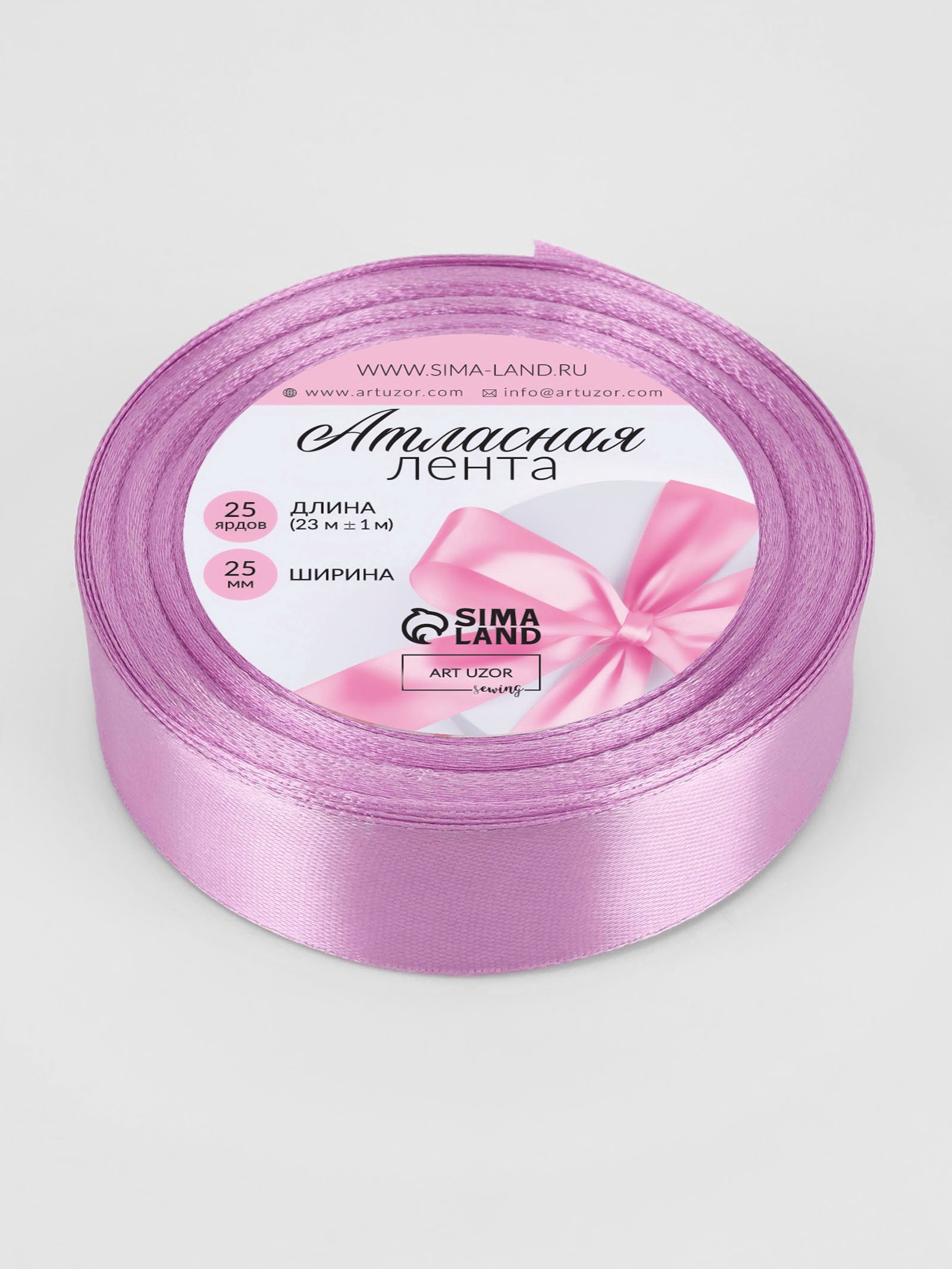 Лента атласная, 25 мм, 23+-1 м, светло-сиреневая, 9x9x2.5 см., Арт Узор, Китай