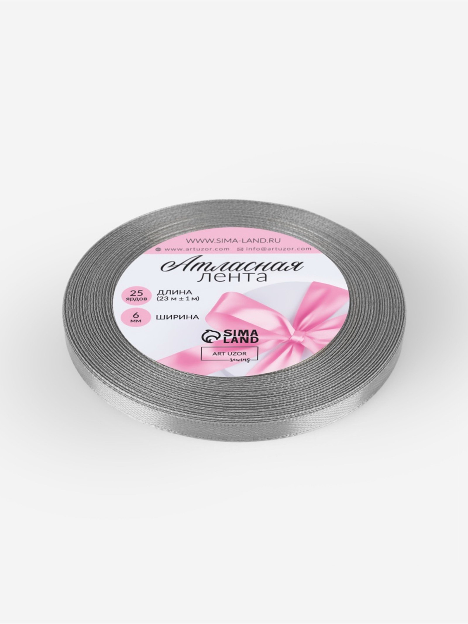 Лента атласная, 6 мм, 23+-1 м, серая №59, 9x9x0.6 см., Арт Узор, Китай