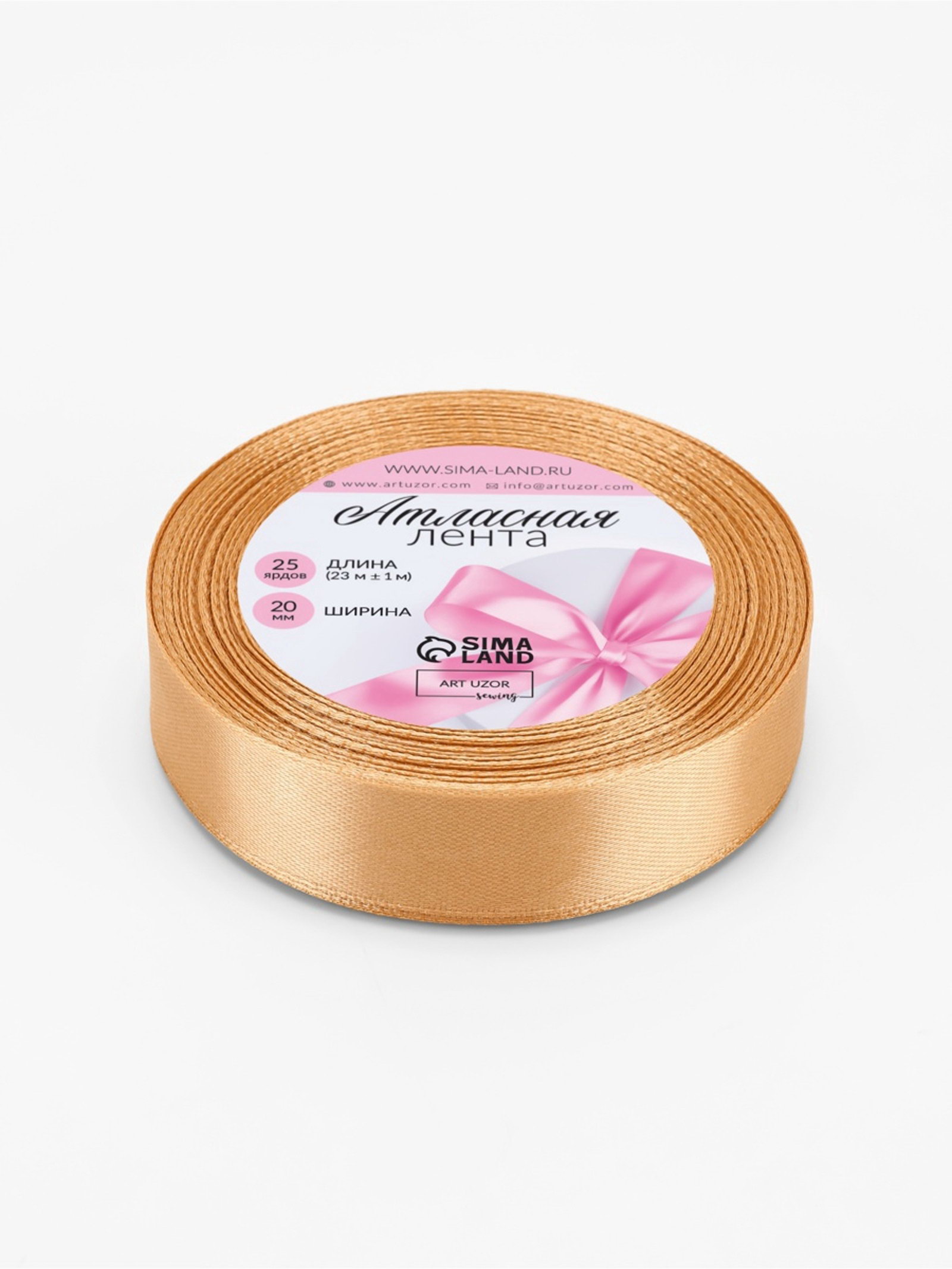 Лента атласная, 20 мм, 23+-1 м, золотисто-бежевая №114, 9x9x2 см., Арт Узор, Китай