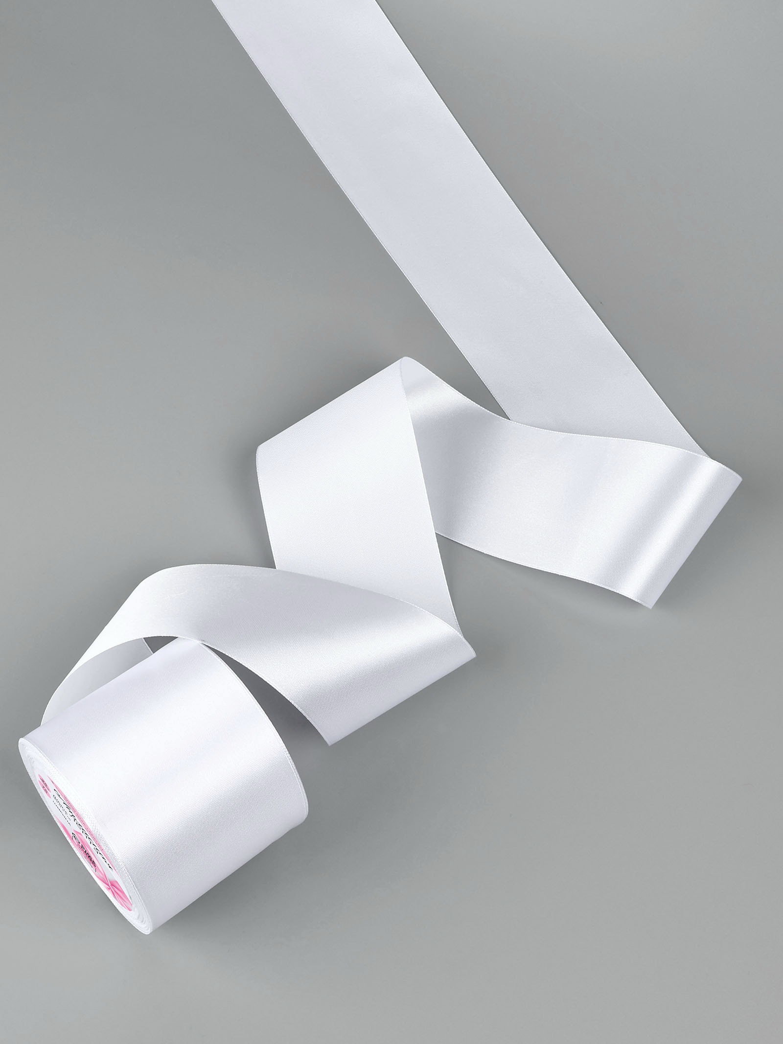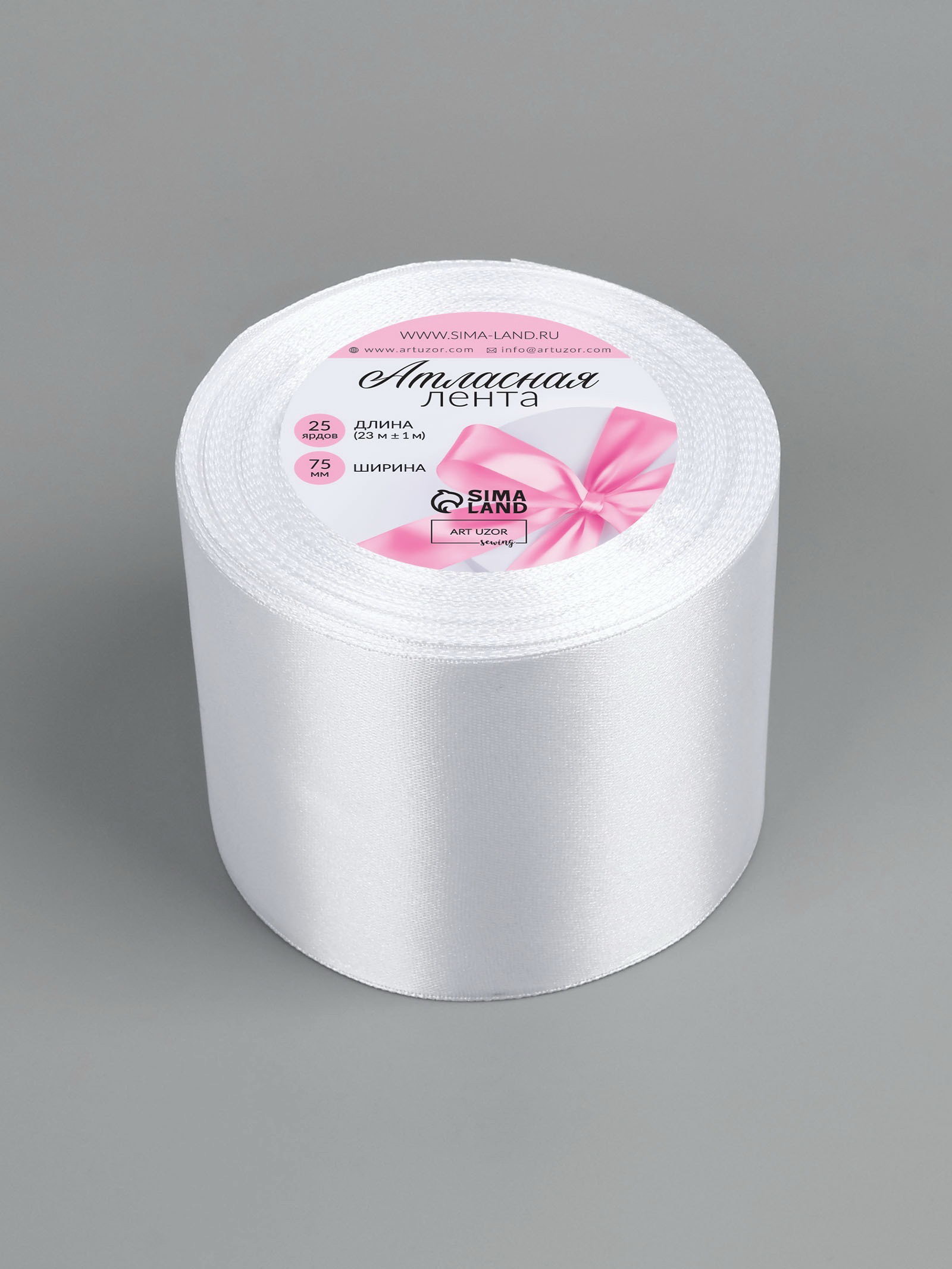 Лента атласная, 75 мм, 23+-1 м, белая №01, 9x9x7.5 см., Арт Узор, Китай
