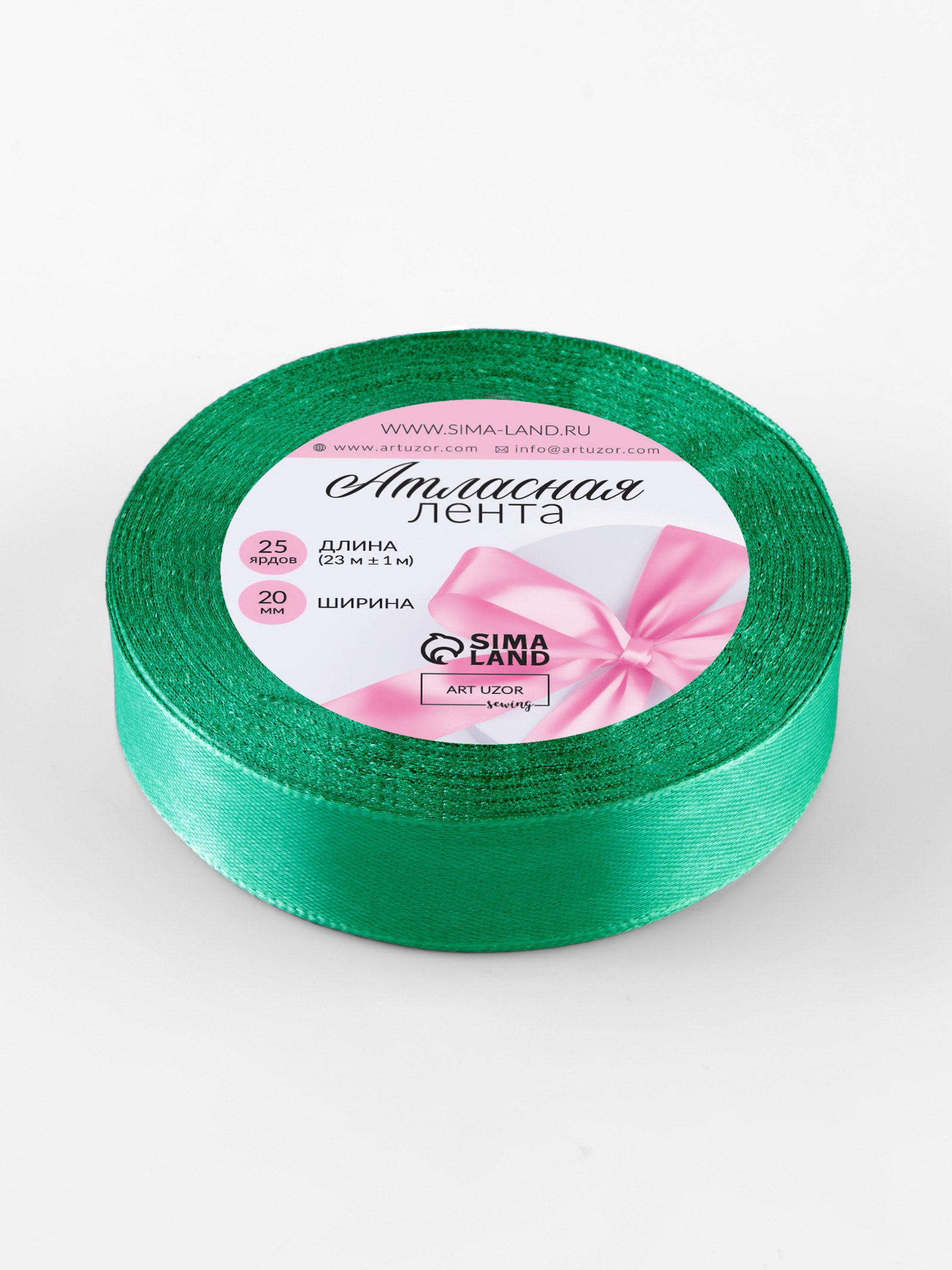 Лента атласная, 20 мм, 23+-1 м, насыщенно-зелёная, 9x9x2 см., Арт Узор, Китай