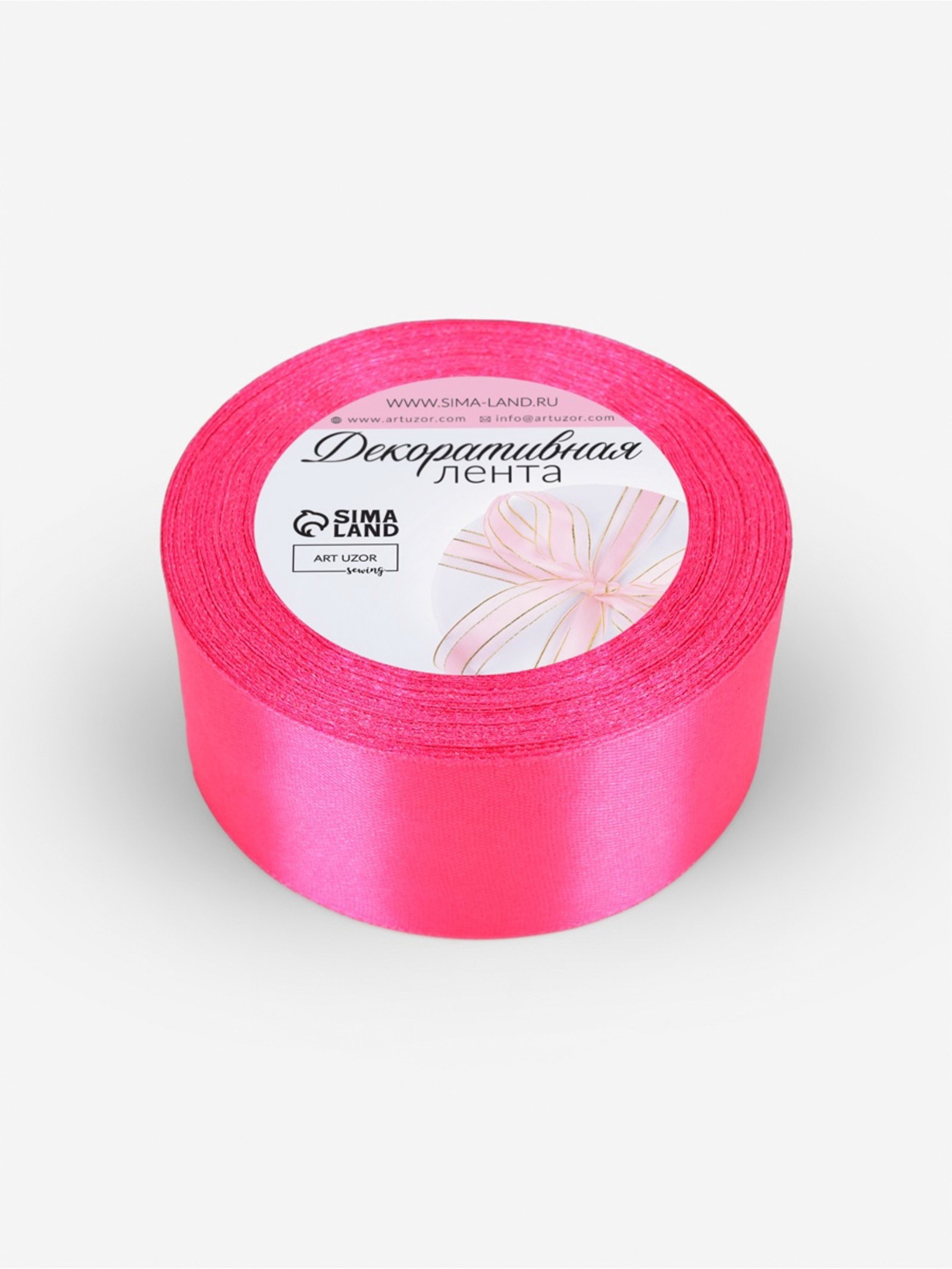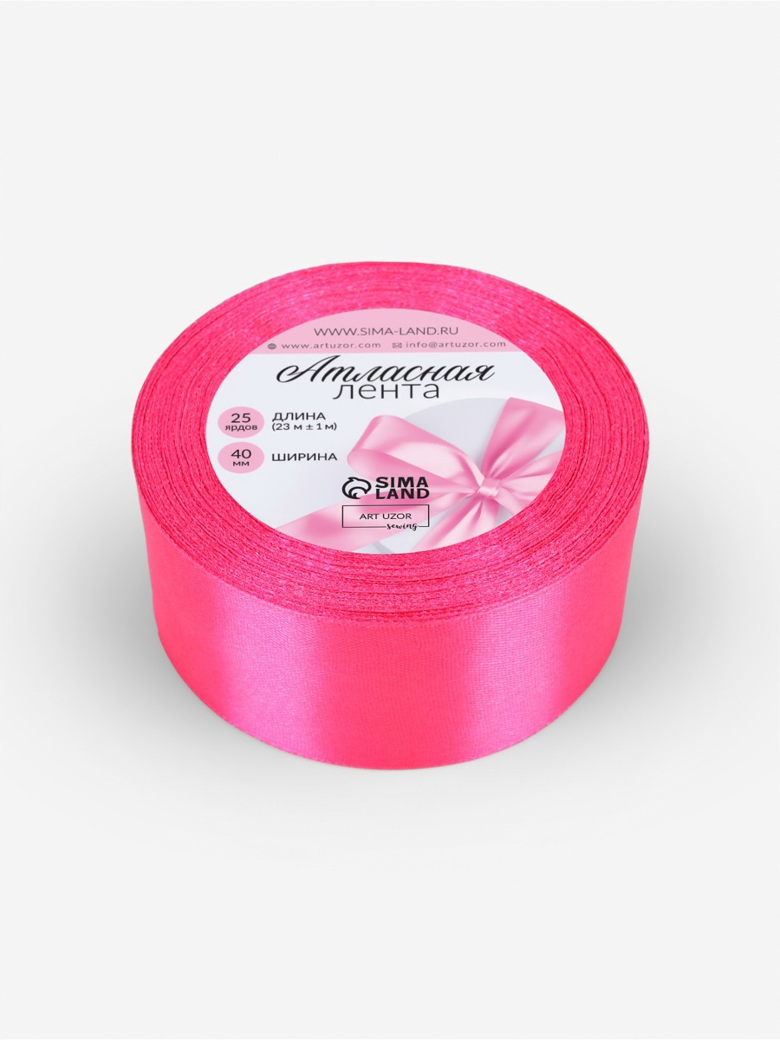 Лента атласная, 40 мм, 23+-1 м, ярко-розовая №190, 9x9x4 см., Арт Узор, Китай