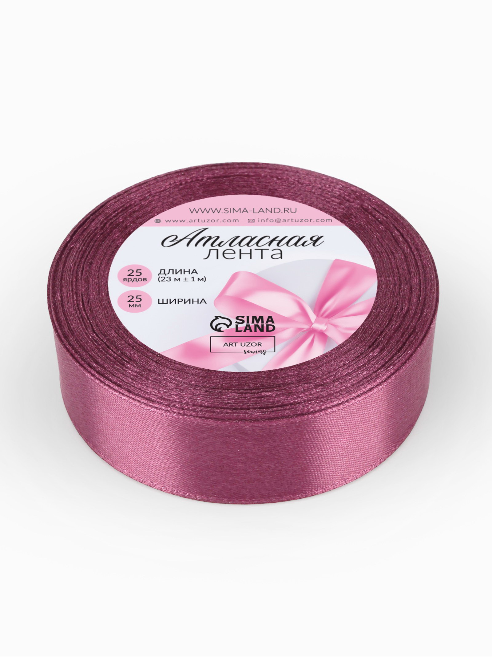 Лента атласная, 25 мм x 23 +- 1 м, цвет сливовый №171, 9x9x2.5 см., Арт Узор, Китай