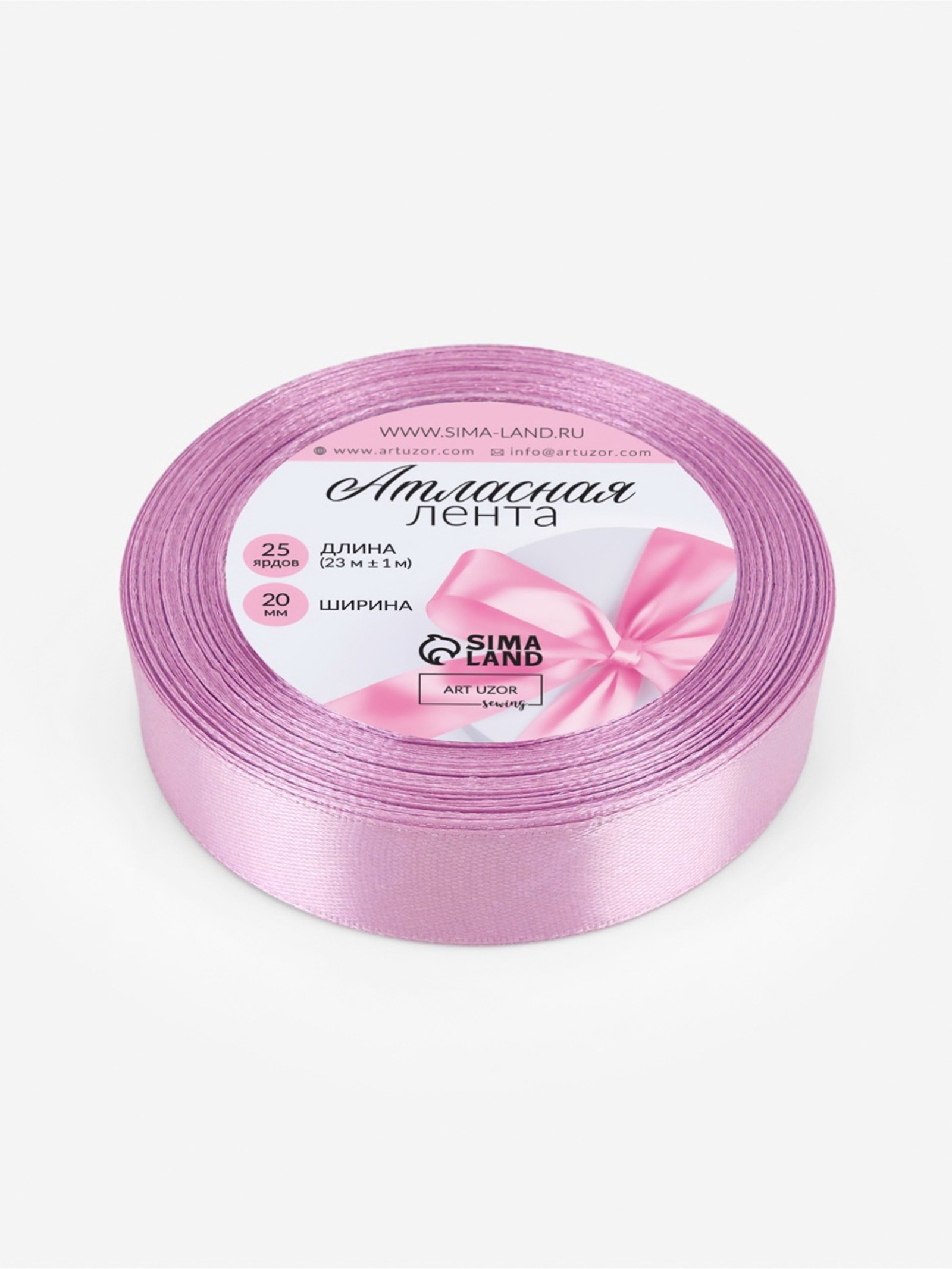 Лента атласная, 20 мм, 23+-1 м, сиреневая №141, 9x9x2 см., Арт Узор, Китай