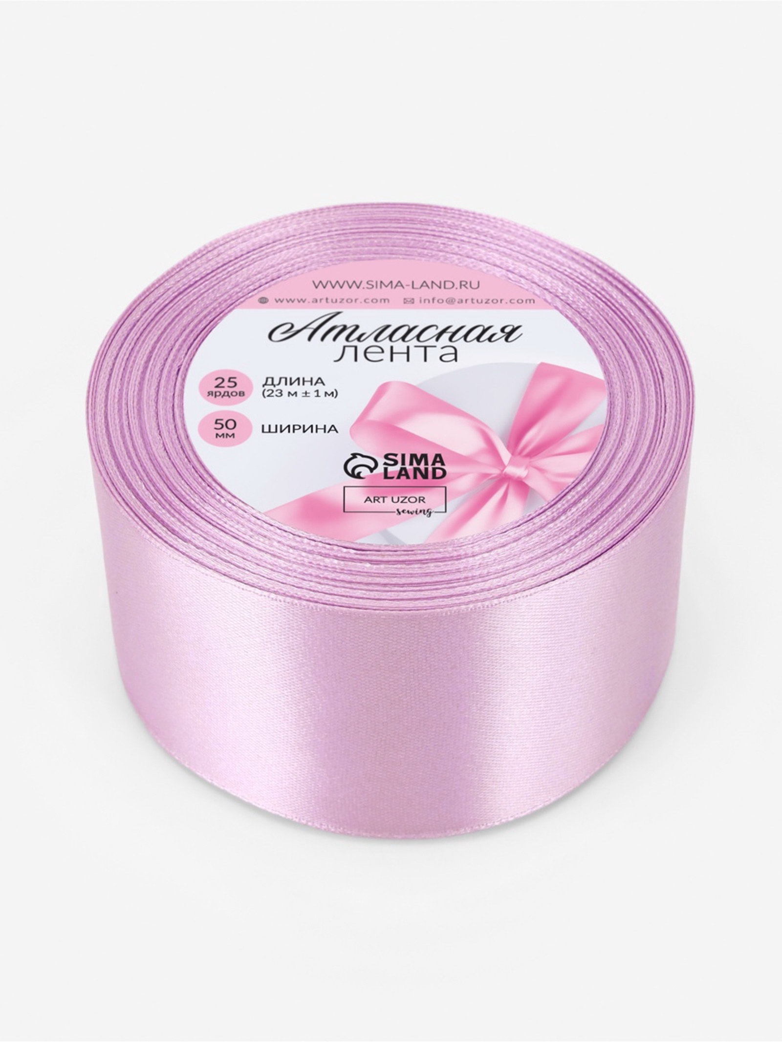 Лента атласная, 50 мм, 23+-1 м, сиреневая №141, 9x9x5 см., Арт Узор, Китай