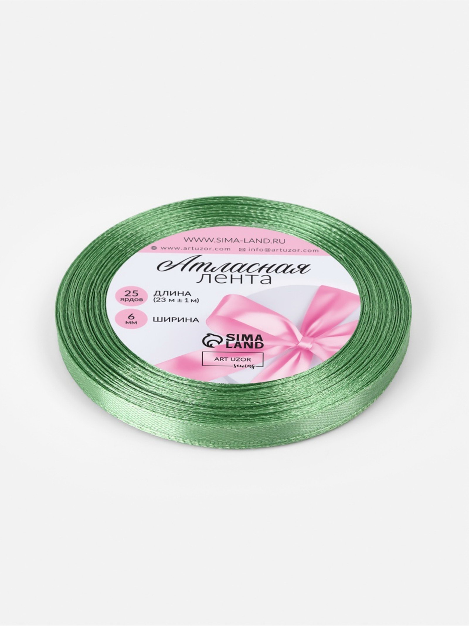 Лента атласная, 6 мм, 23+-1 м, фисташковая №65, 9x9x0.6 см., Арт Узор, Китай
