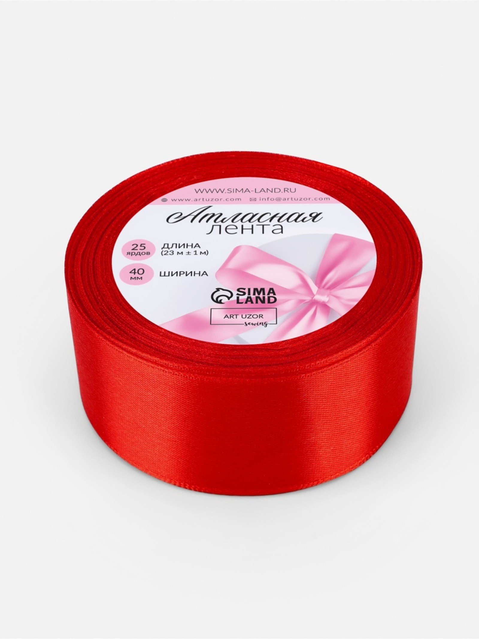 Лента атласная, 40 мм, 23+-1 м, алая, 9x9x4 см., Арт Узор, Китай