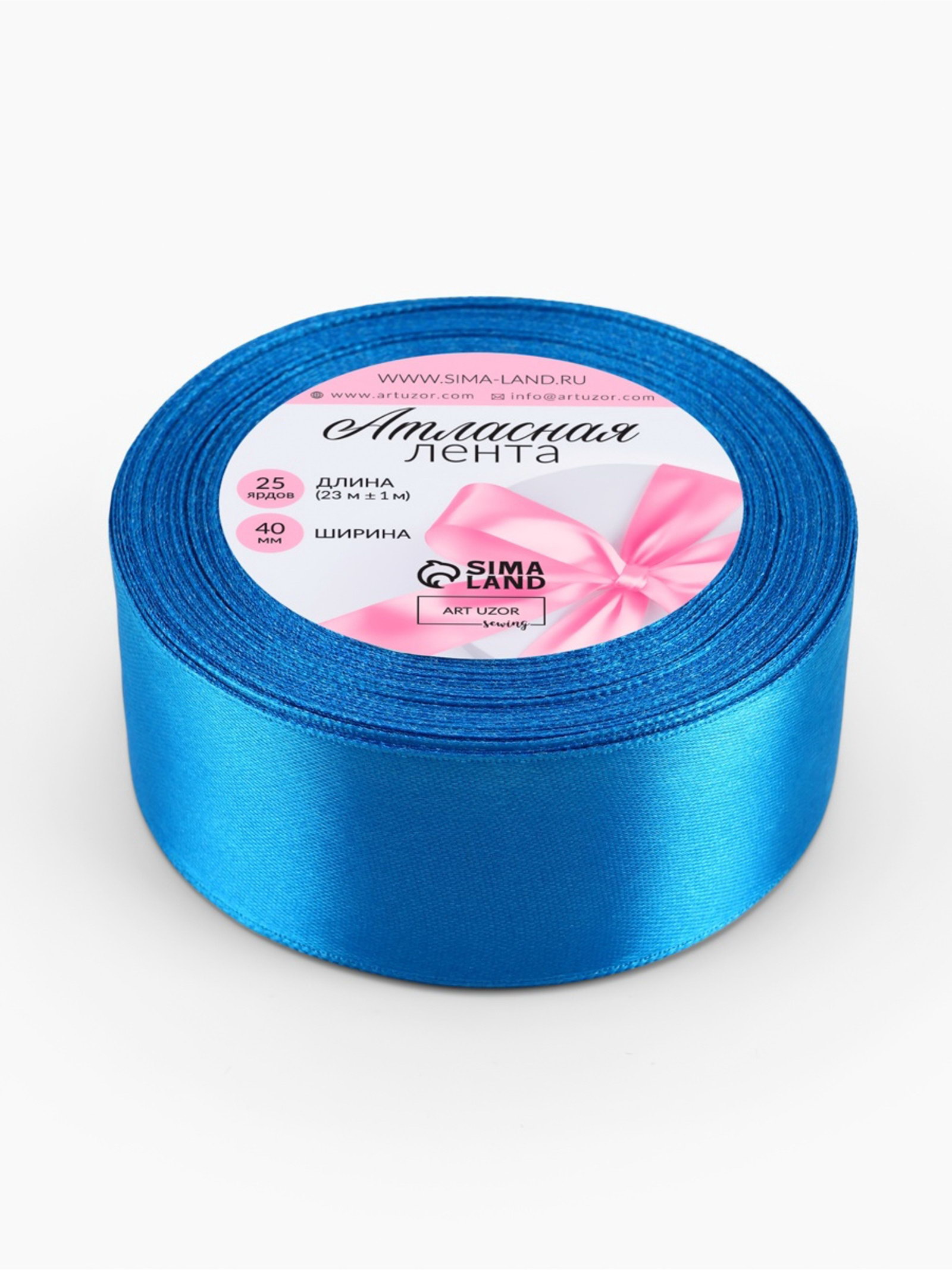 Лента атласная, 40 мм, 23+-1 м, тёмно-голубая, 9x9x4 см., Арт Узор, Китай