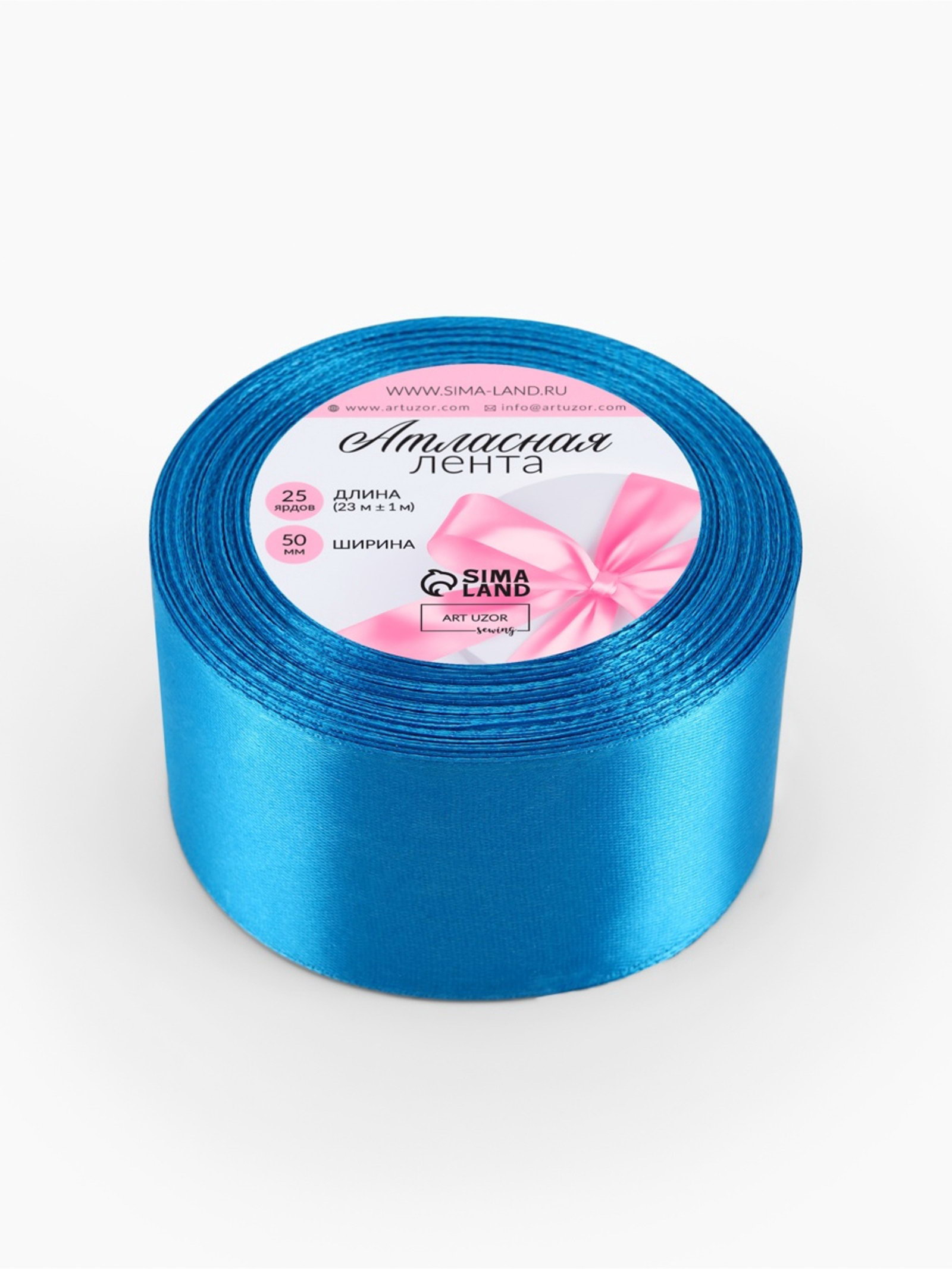 Лента атласная, 50 мм, 23+-1 м, тёмно-голубая, 9x9x5 см., Арт Узор, Китай