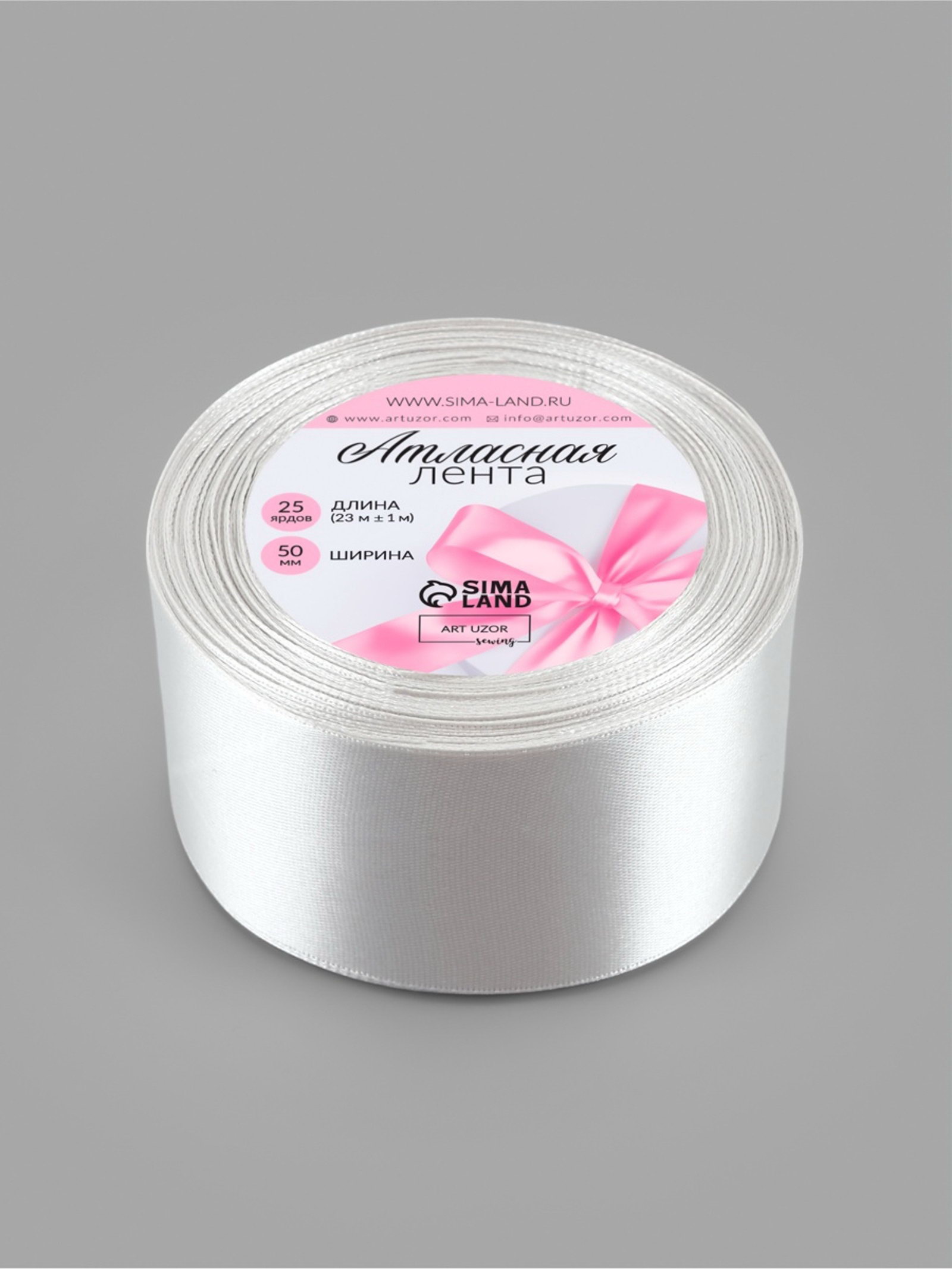 Лента атласная, 50 мм, 23+-1 м, цвет серебряный №176, 9x9x5 см., Арт Узор, Китай