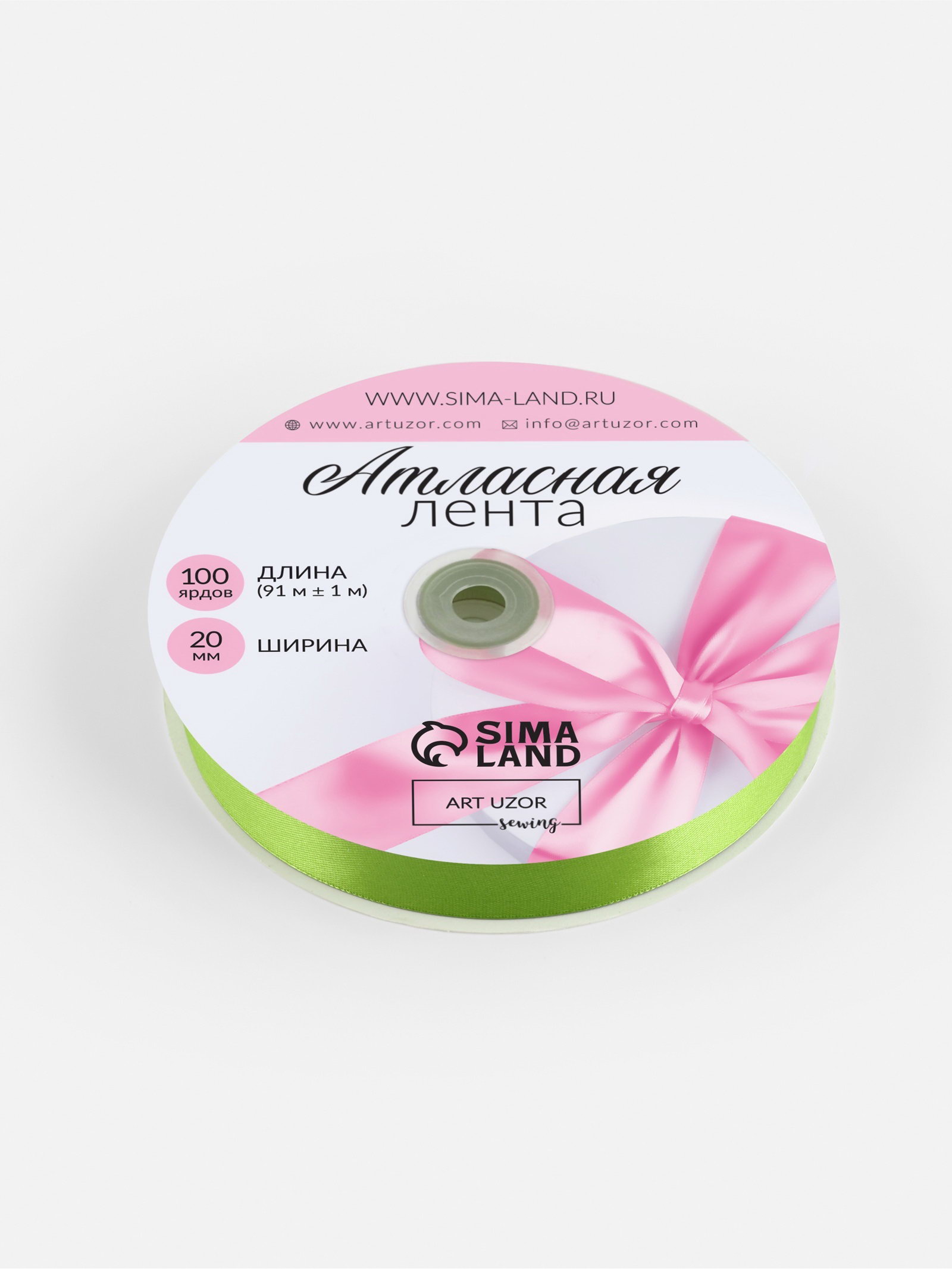 Лента атласная, 20 мм, 91+-1 м, светло-зелёная №184, 15x15x2 см., Арт Узор, Китай