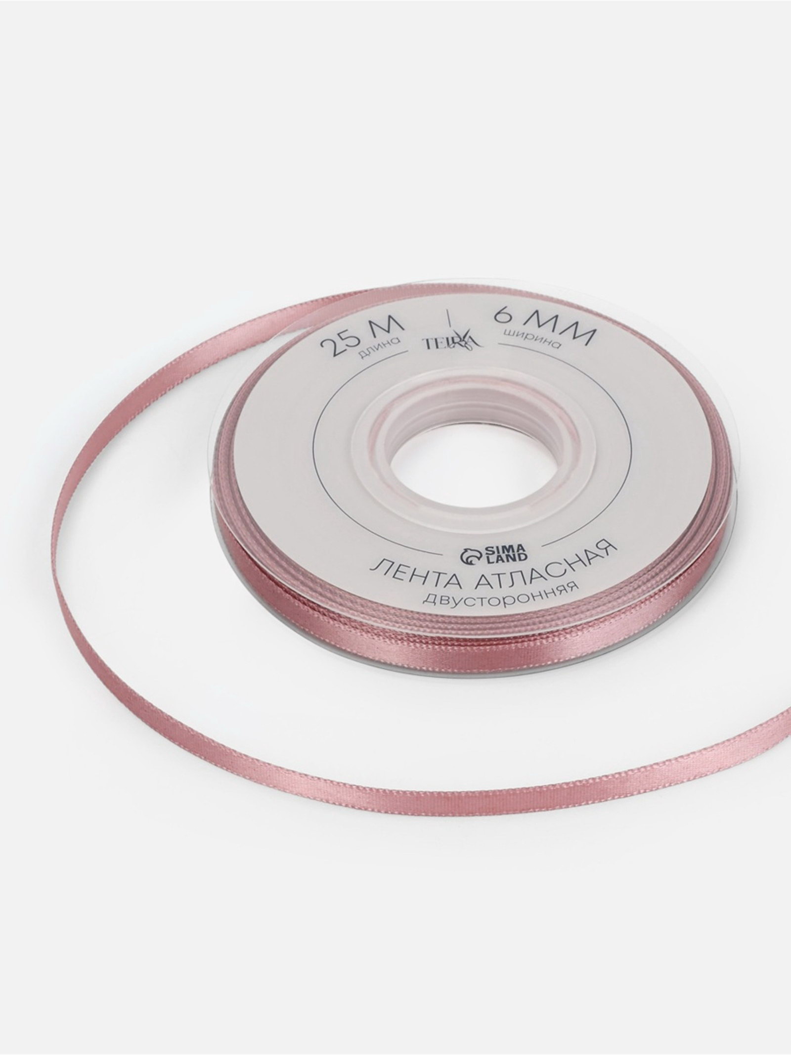 Лента атласная двухсторонняя, 6 мм, 25+-1 м, розовая №164, 10x10x0.6 см., TEIRA, Китай