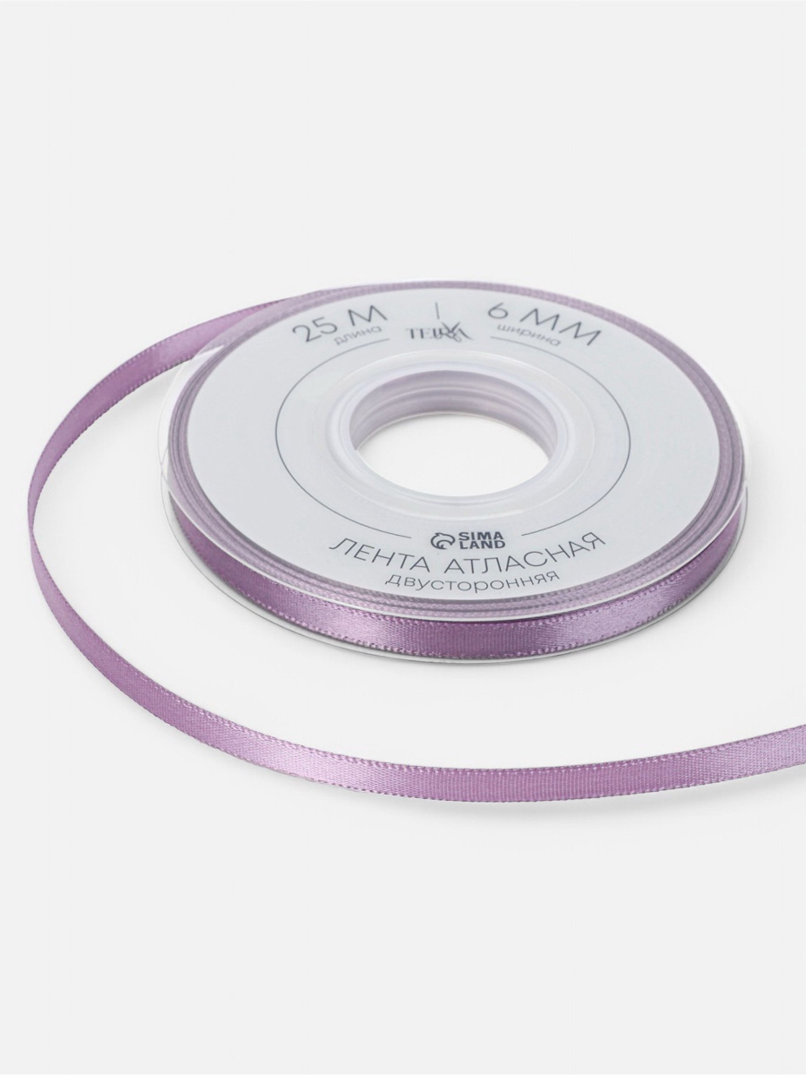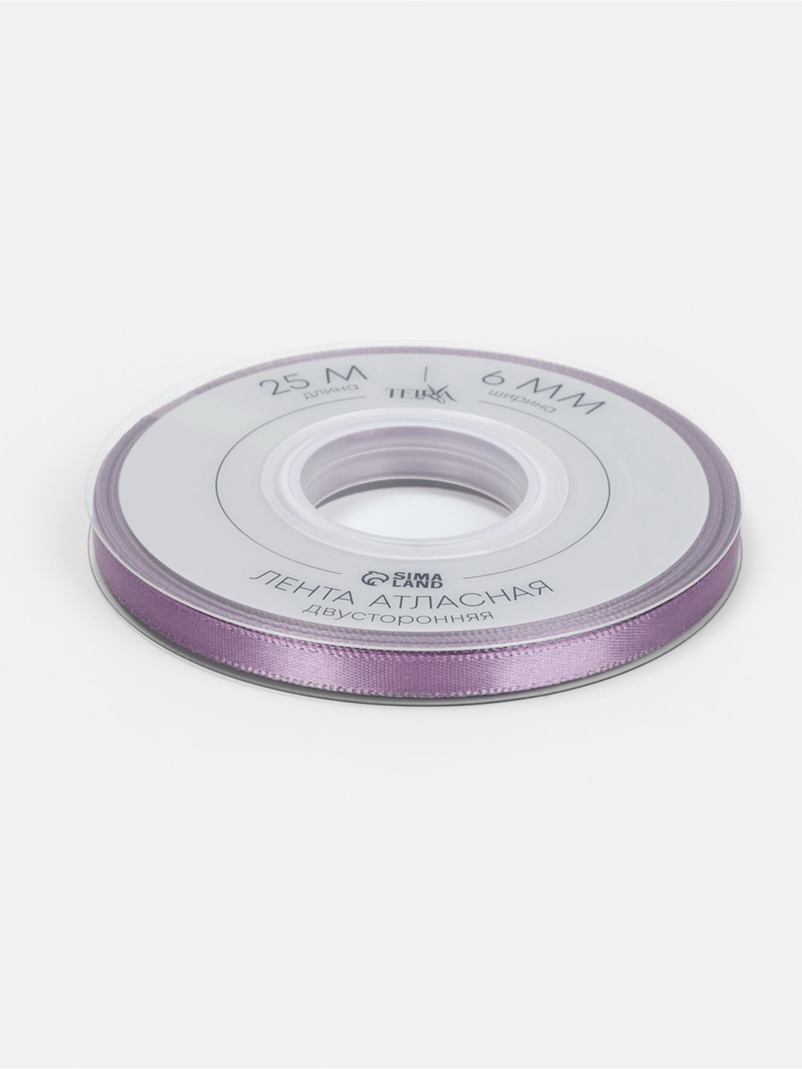 Лента атласная двухсторонняя, 6 мм, 25+-1 м, сиреневая №0434, 10x10x0.6 см., TEIRA, Китай