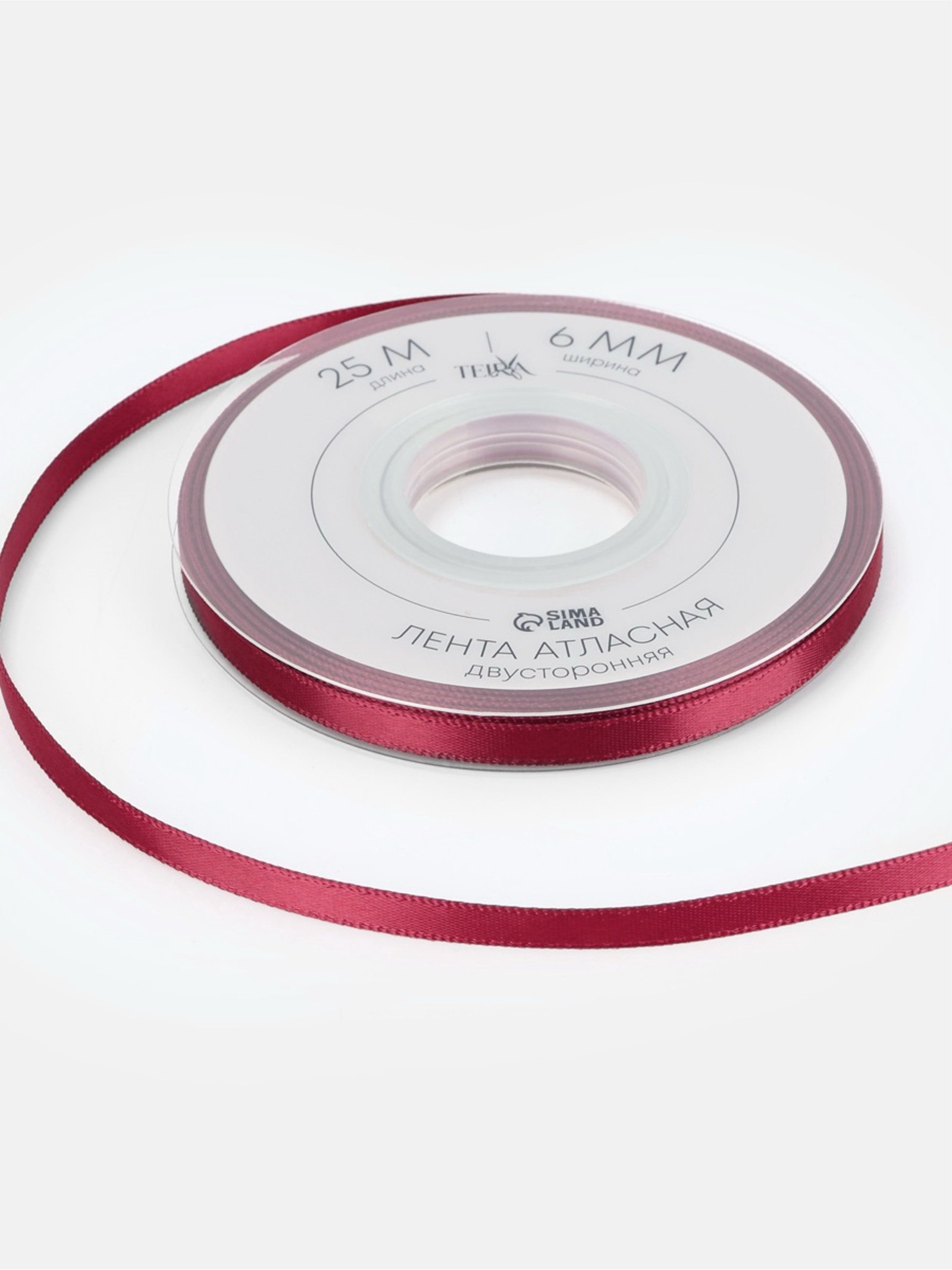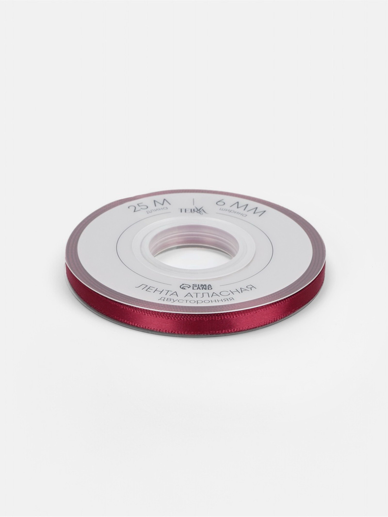 Лента атласная двухсторонняя, 6 мм, 25+-1 м, бордовая №0789, 10x10x0.6 см., TEIRA, Китай