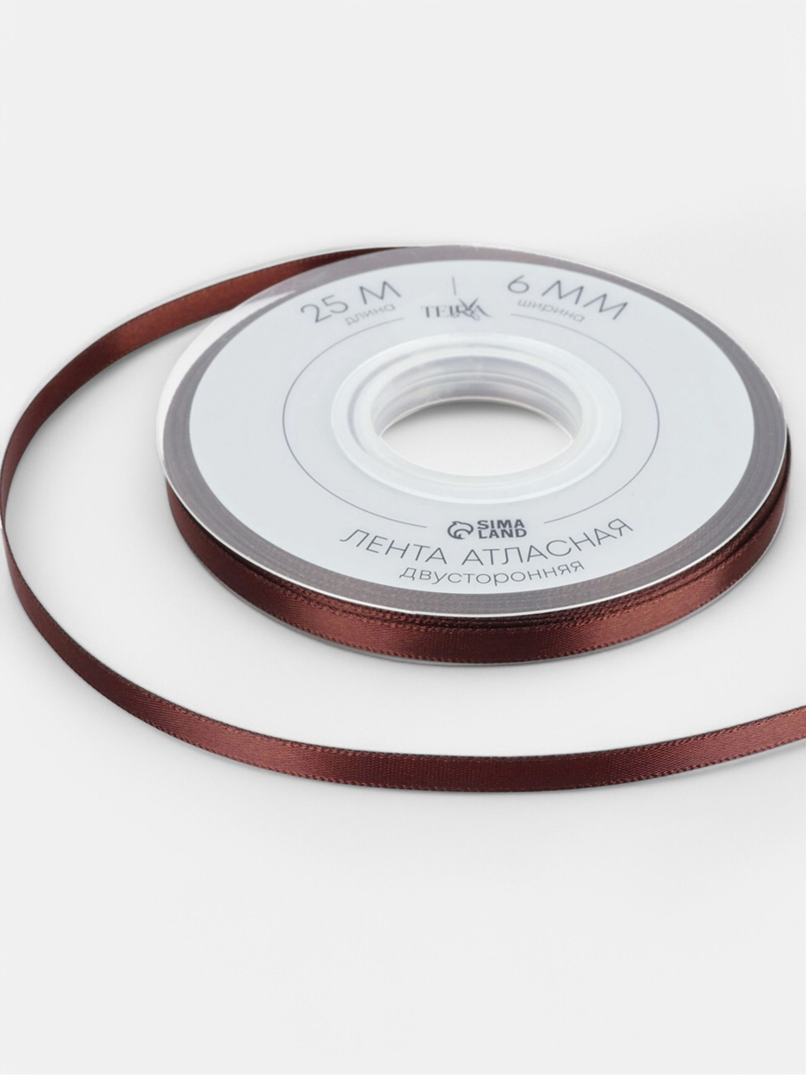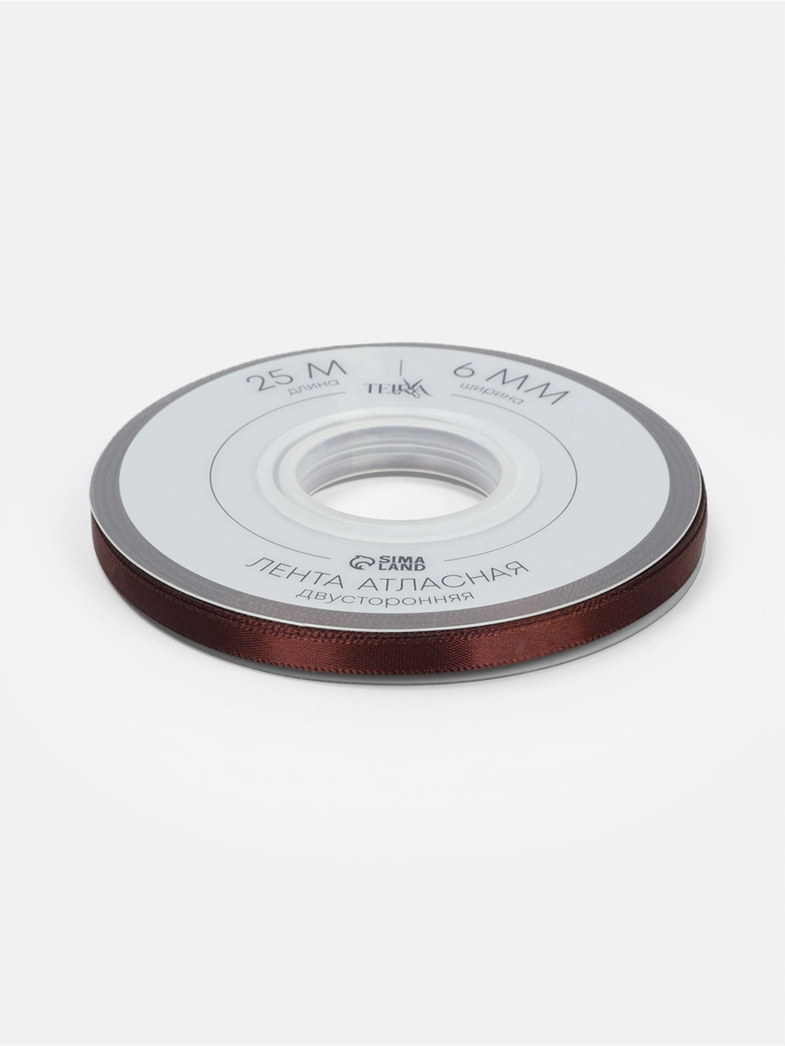 Лента атласная двухсторонняя, 6 мм, 25+-1 м, коричневая №0850, 10x10x0.6 см., TEIRA, Китай