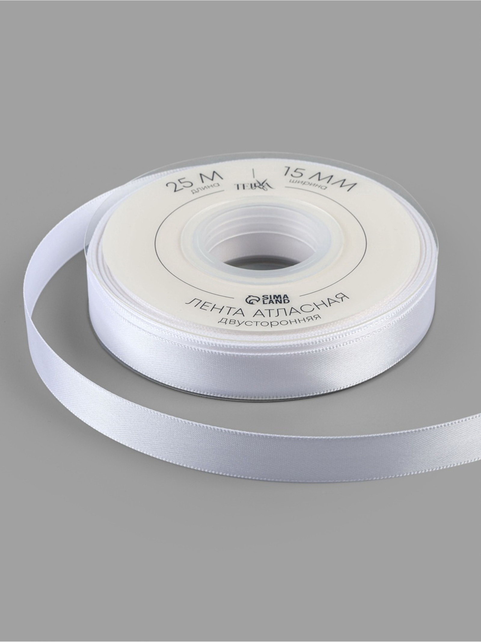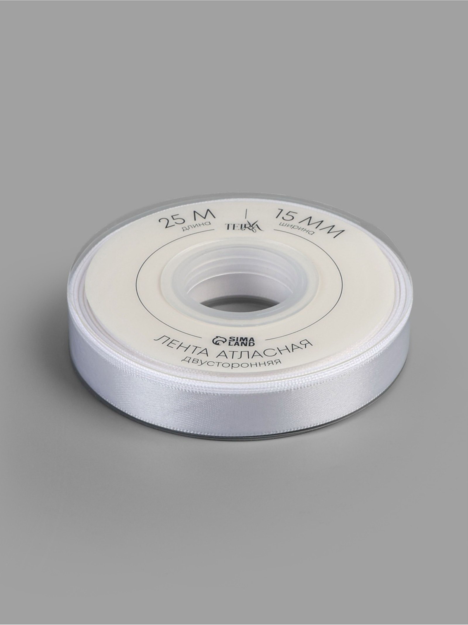 Лента атласная двухсторонняя, 15 мм, 25+-1 м, белая №0029, 10x10x1.5 см., TEIRA, Китай