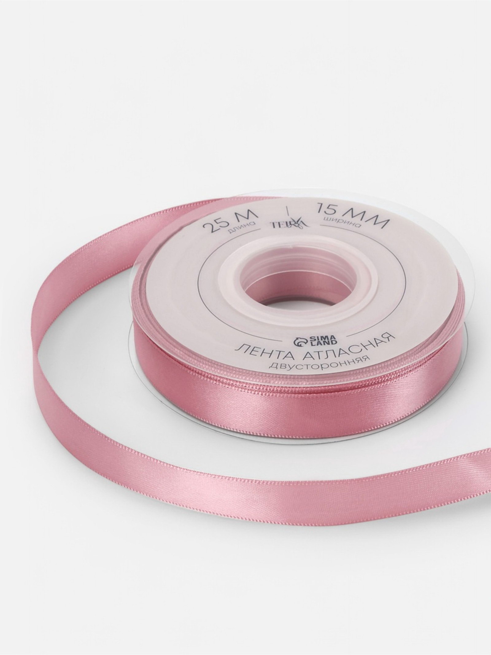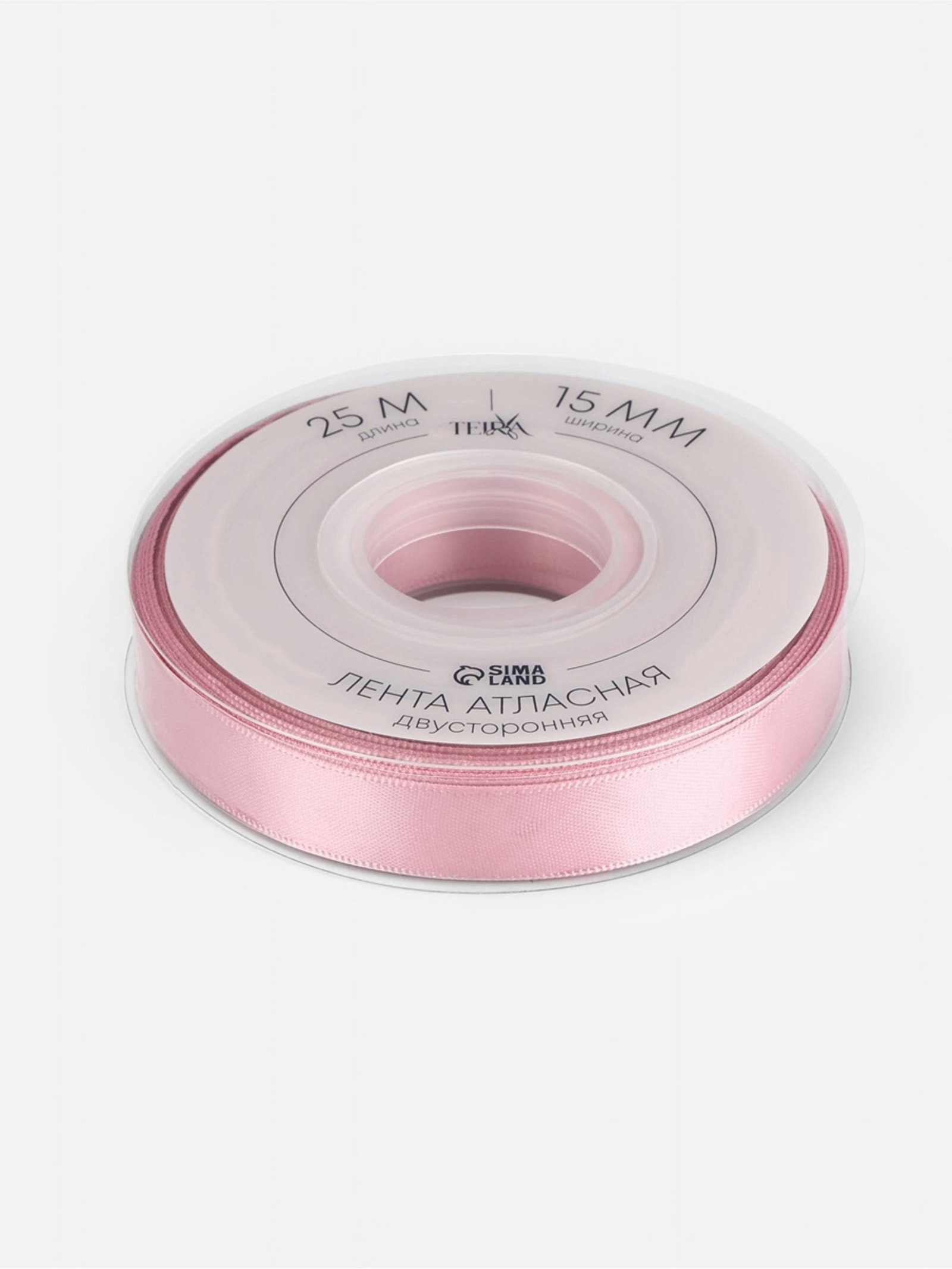 Лента атласная двухсторонняя, 15 мм, 25+-1 м, розовая №158, 10x10x1.5 см., TEIRA, Китай