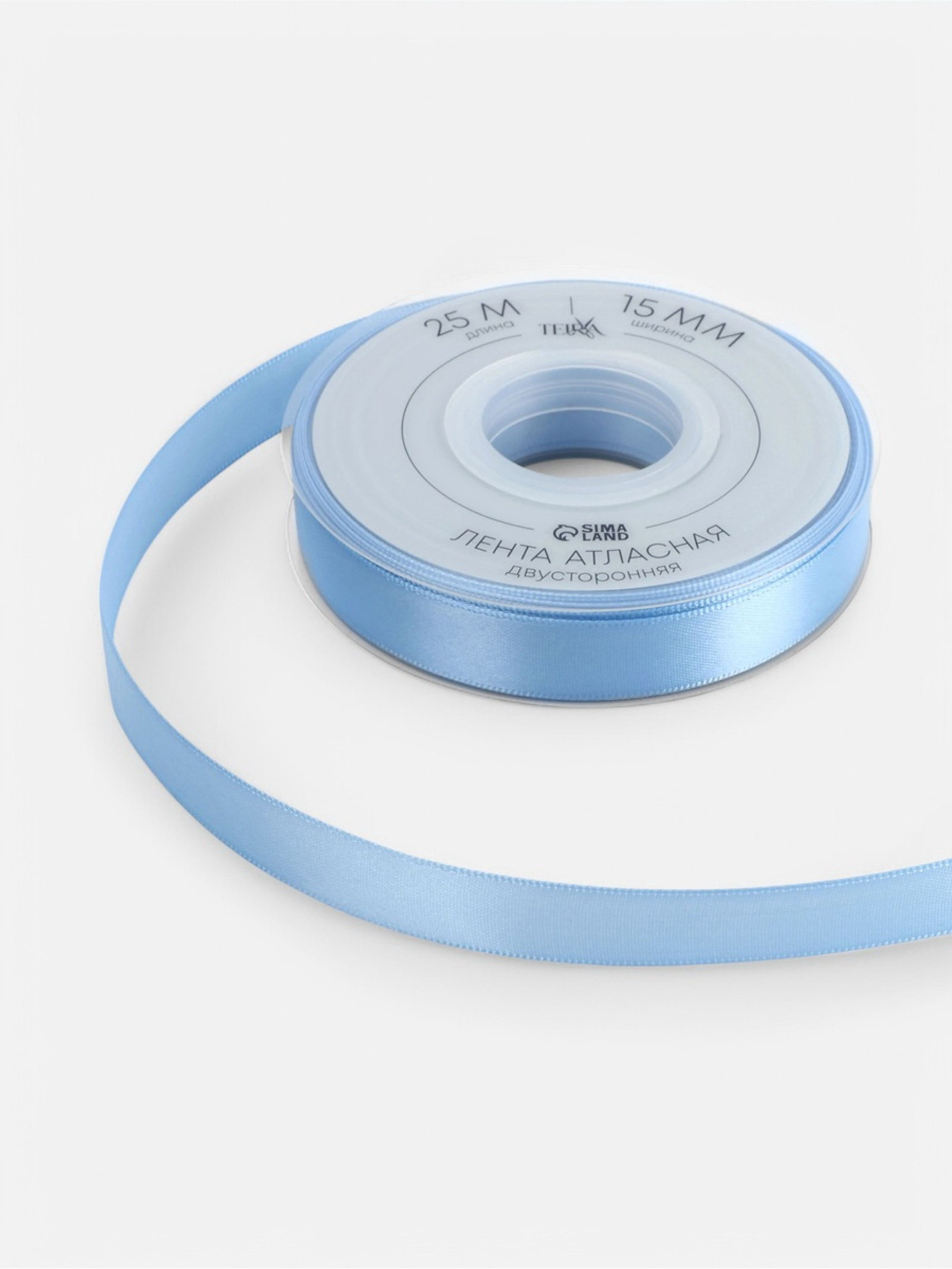 Лента атласная двухсторонняя, 15 мм, 25+-1 м, светло-голубая №332, 10x10x1.5 см., TEIRA, Китай
