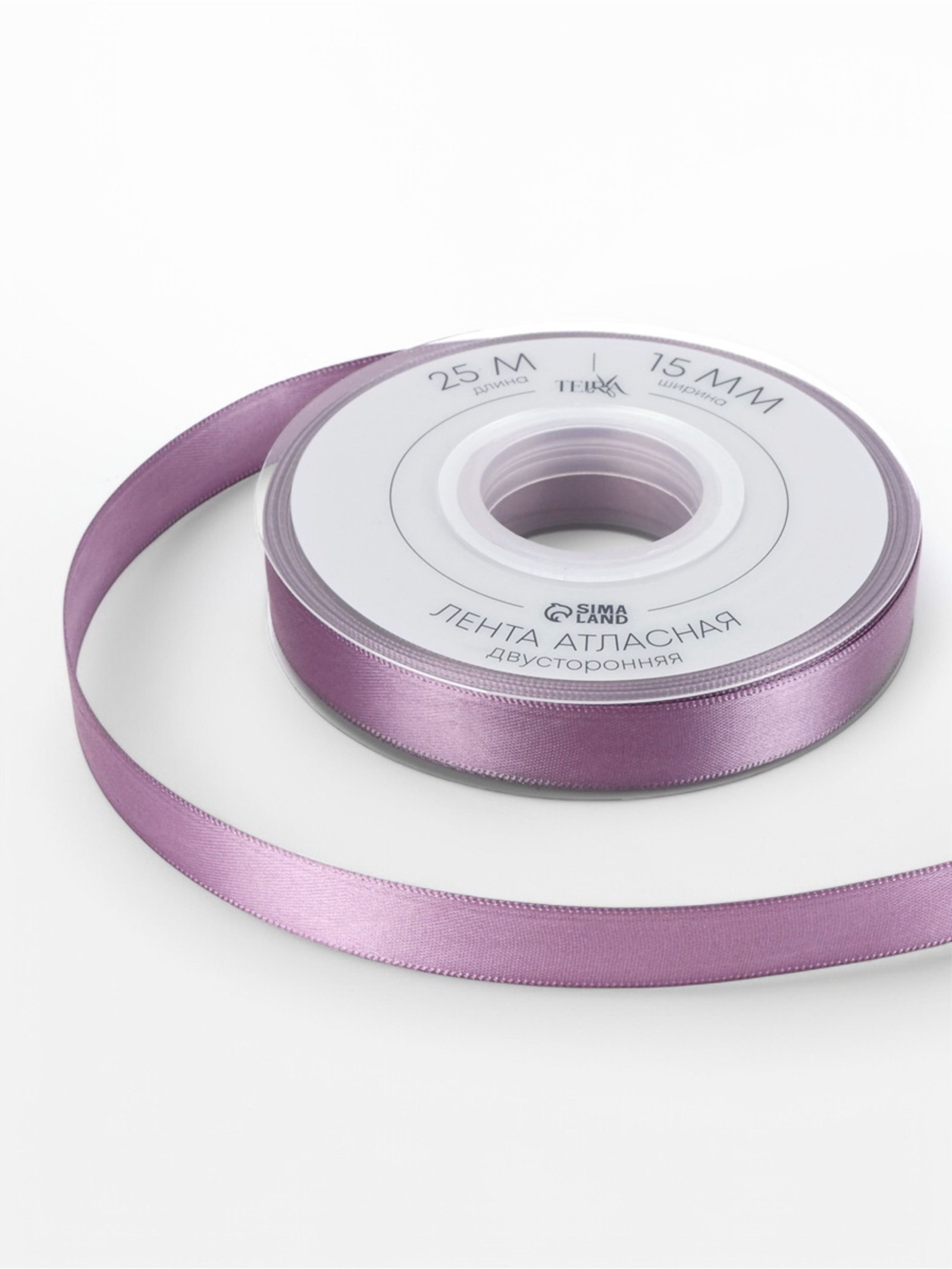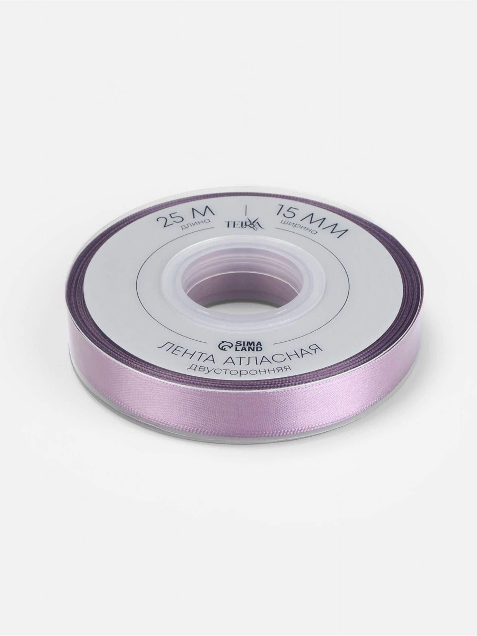 Лента атласная двухсторонняя, 15 мм, 25+-1 м, сиреневая №0434, 10x10x1.5 см., TEIRA, Китай