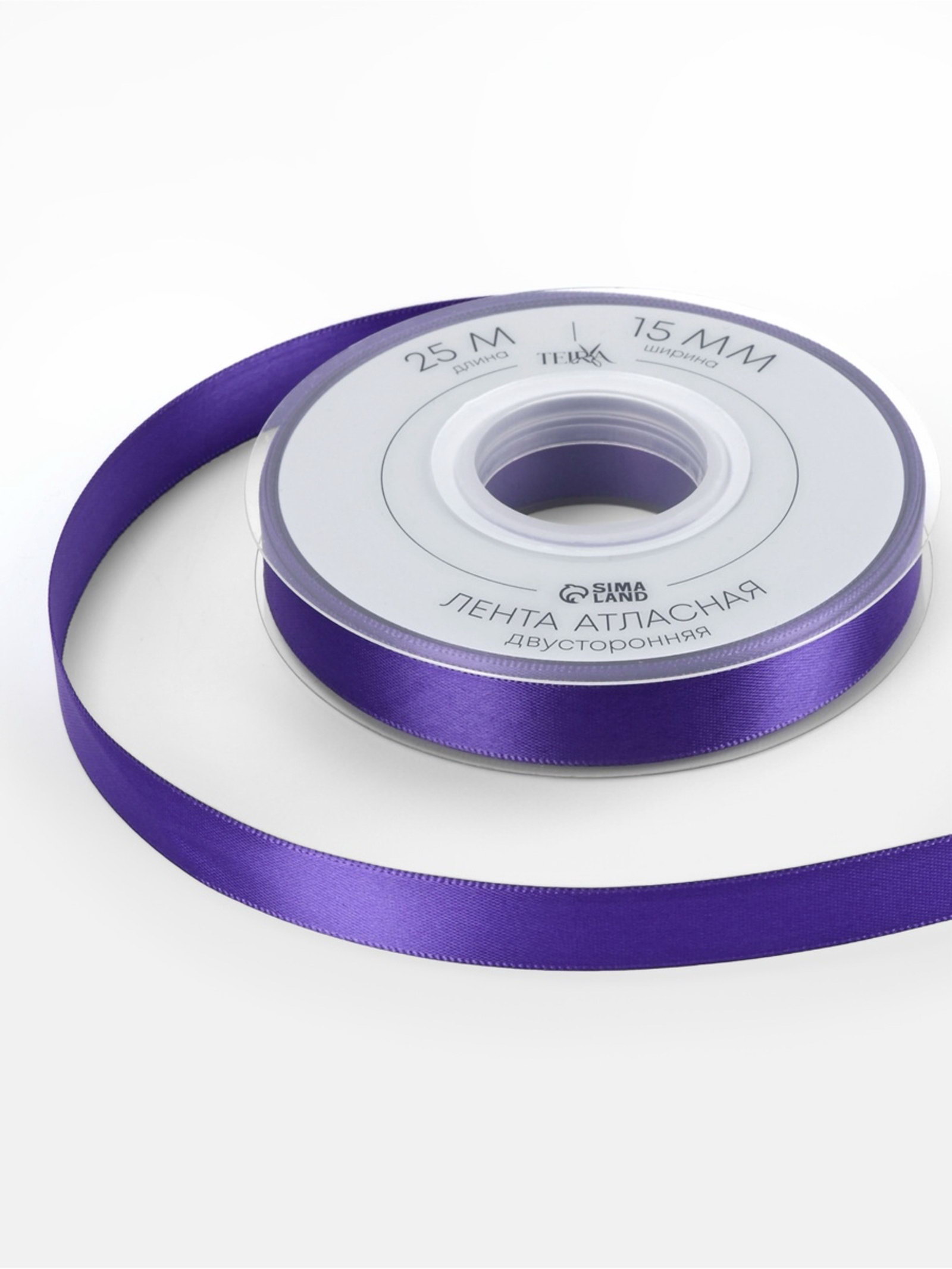 Лента атласная двухсторонняя, 15 мм, 25+-1 м, фиолетовая №0470, 10x10x1.5 см., TEIRA, Китай