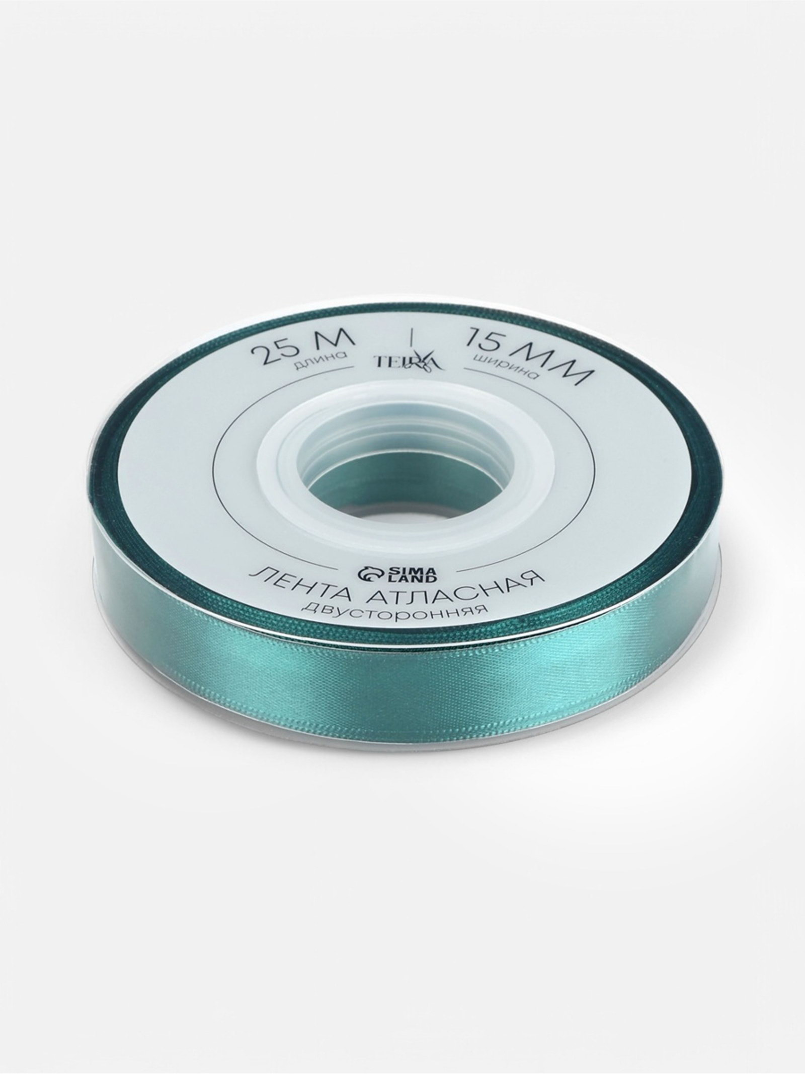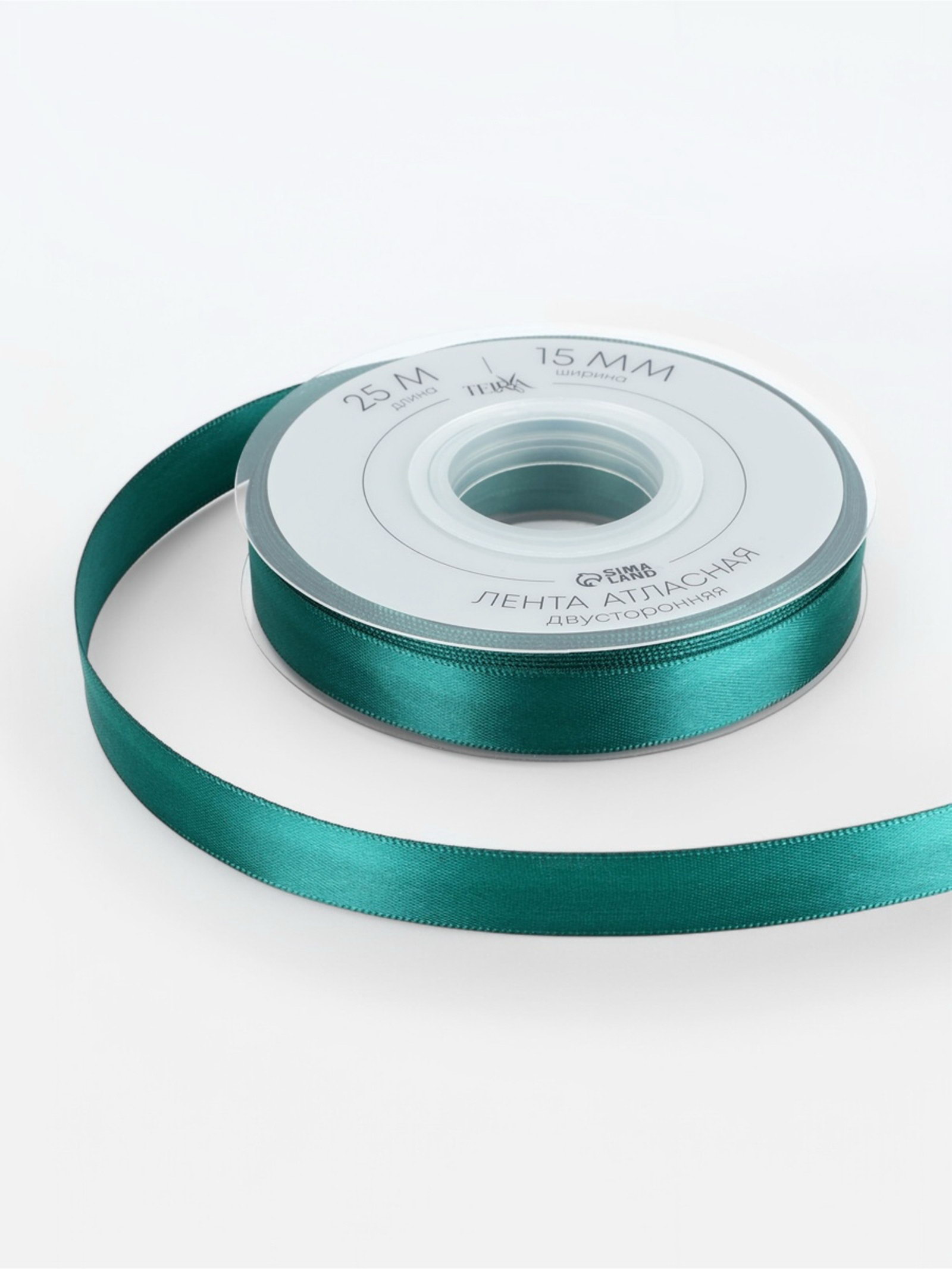 Лента атласная двухсторонняя, 15 мм, 25+-1 м, зелёная №0589, 10x10x1.5 см., TEIRA, Китай