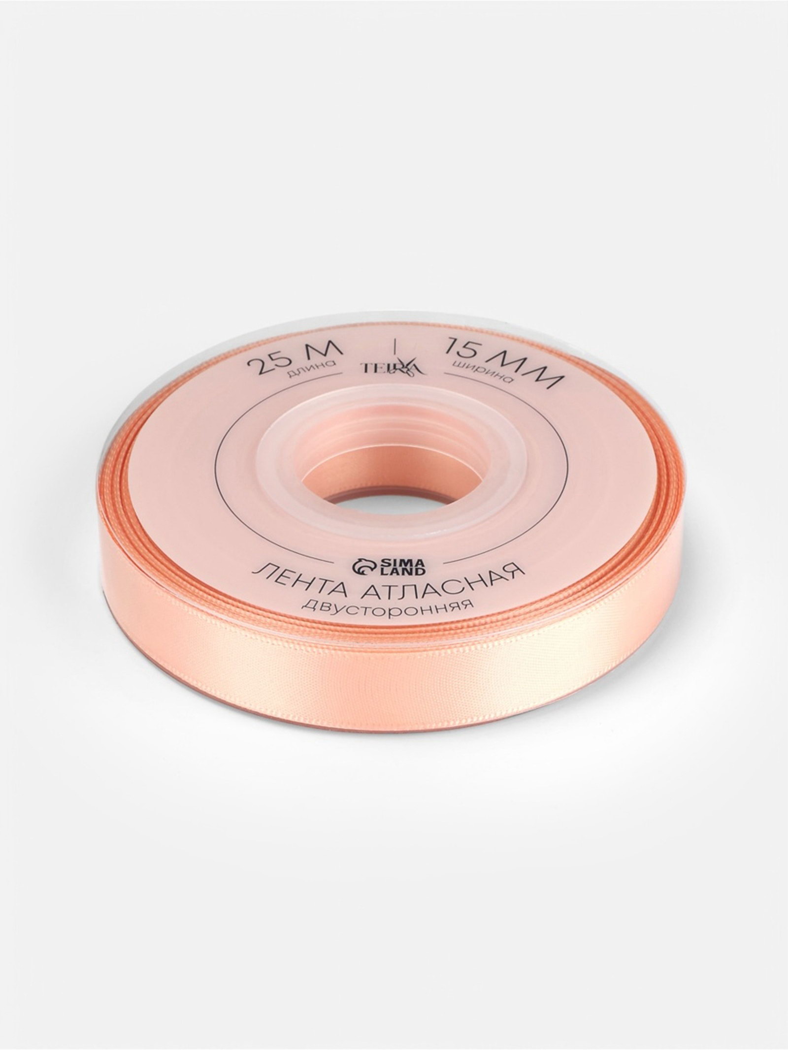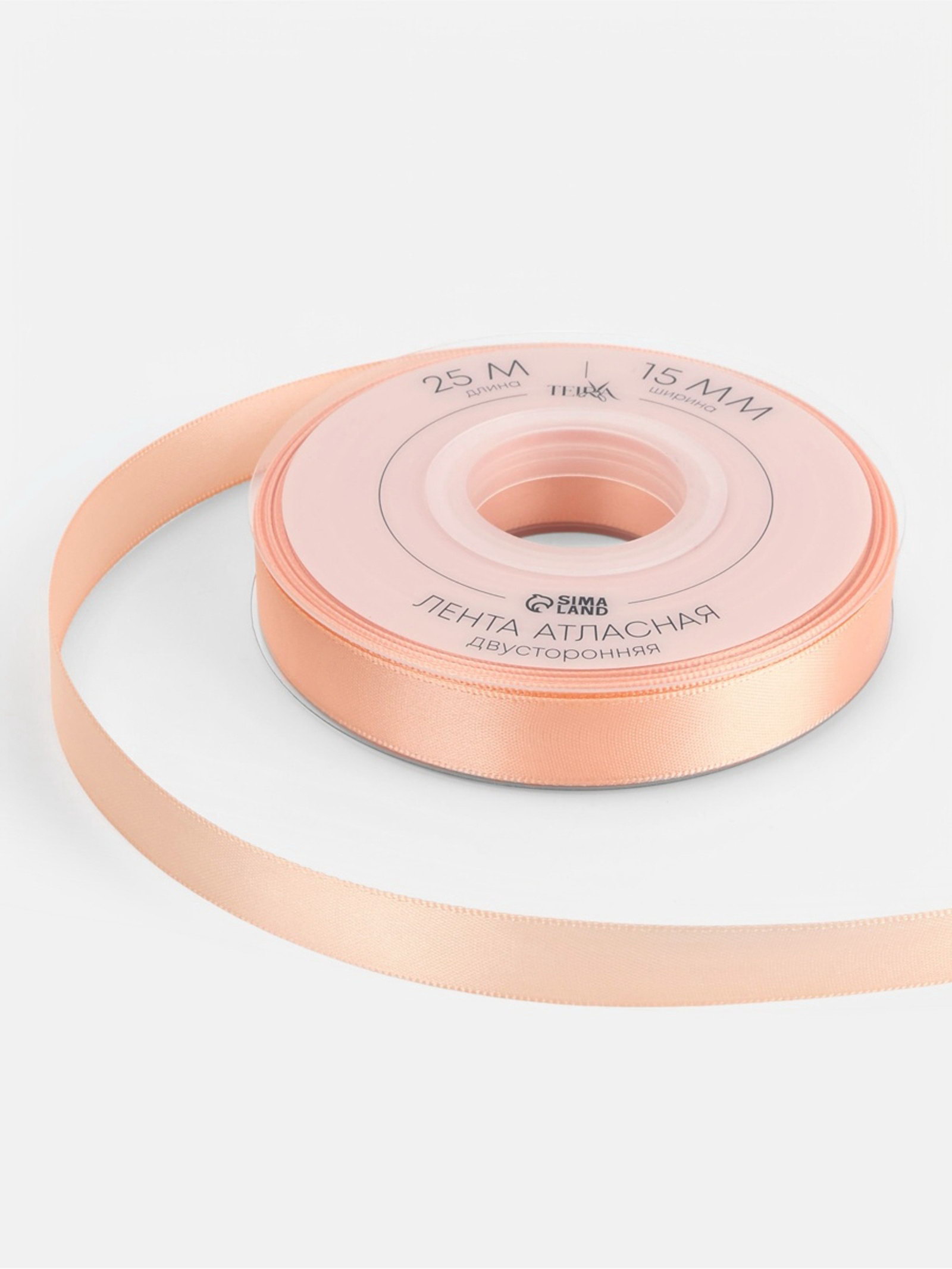 Лента атласная двухсторонняя, 15 мм, 25+-1 м, бежевая №0714, 10x10x1.5 см., TEIRA, Китай