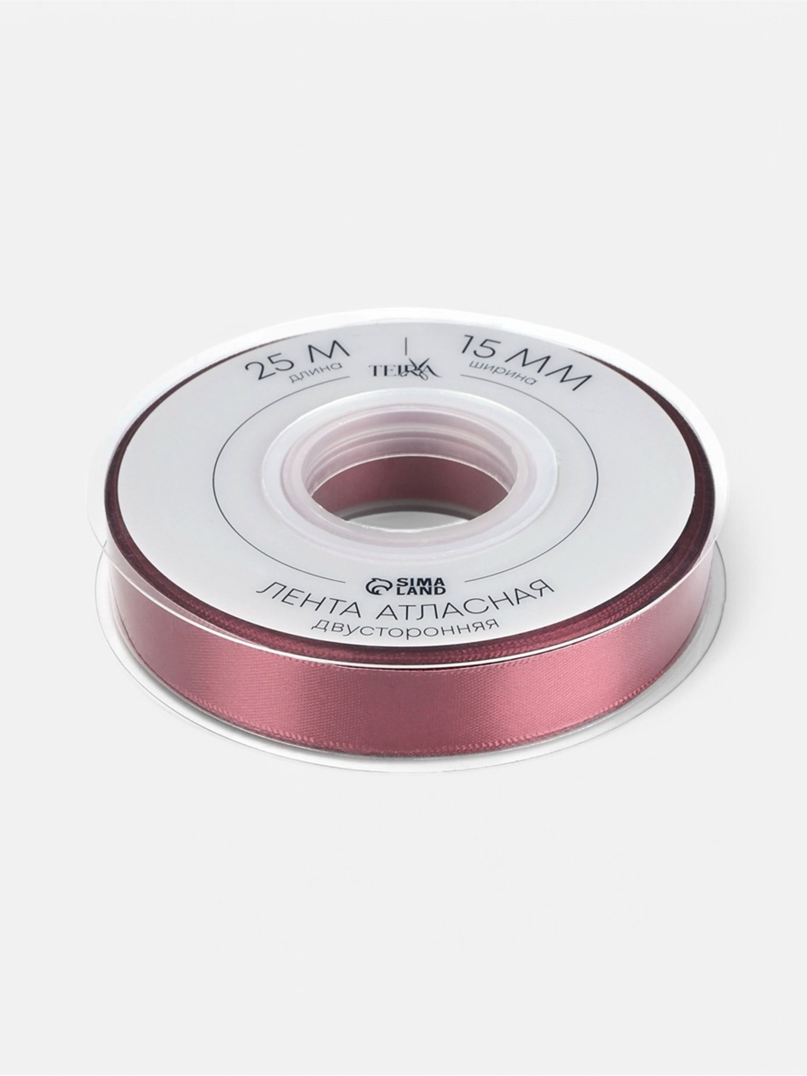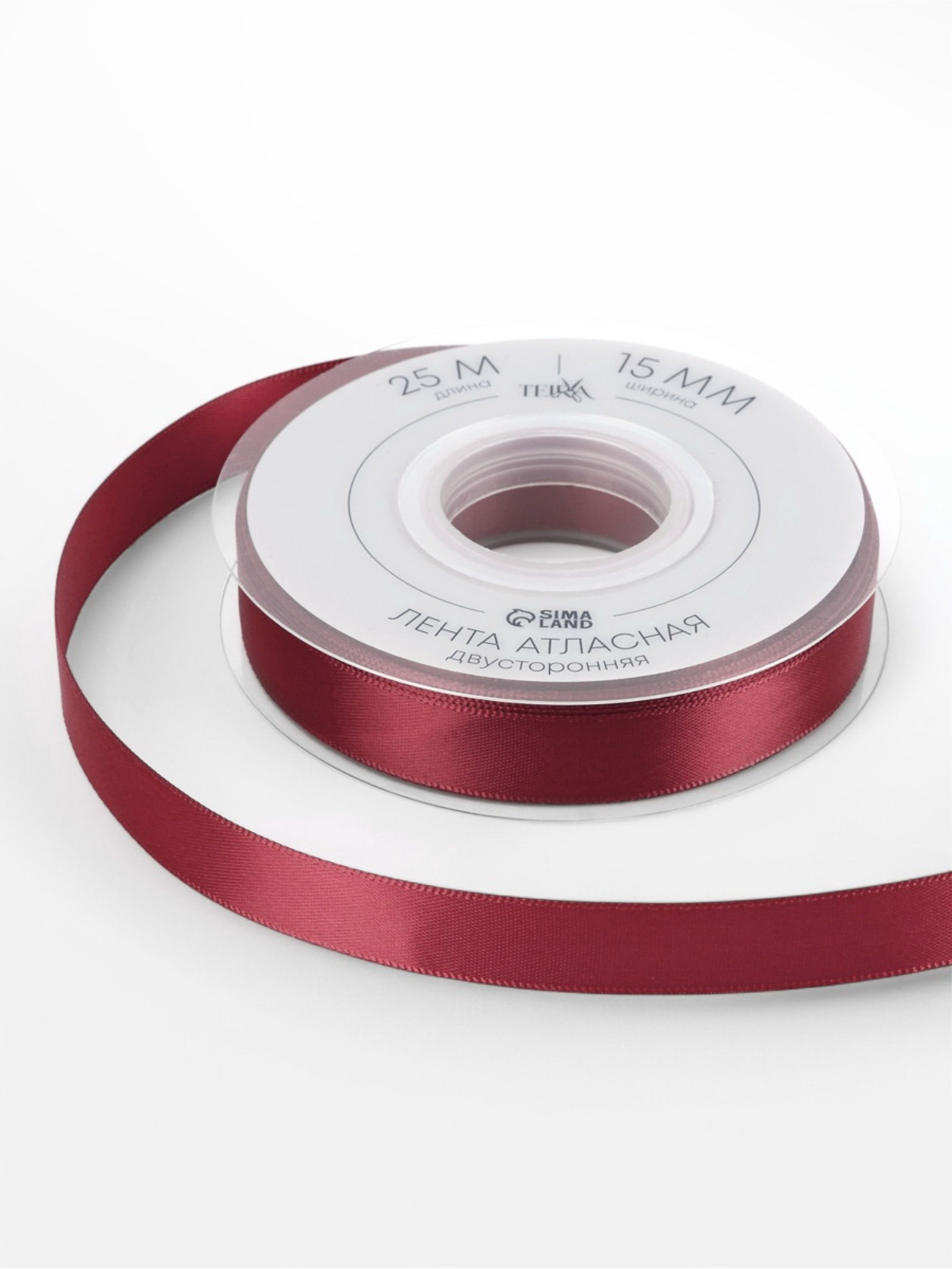 Лента атласная двухсторонняя, 15 мм, 25+-1 м, бордовая №0789, 10x10x1.5 см., TEIRA, Китай