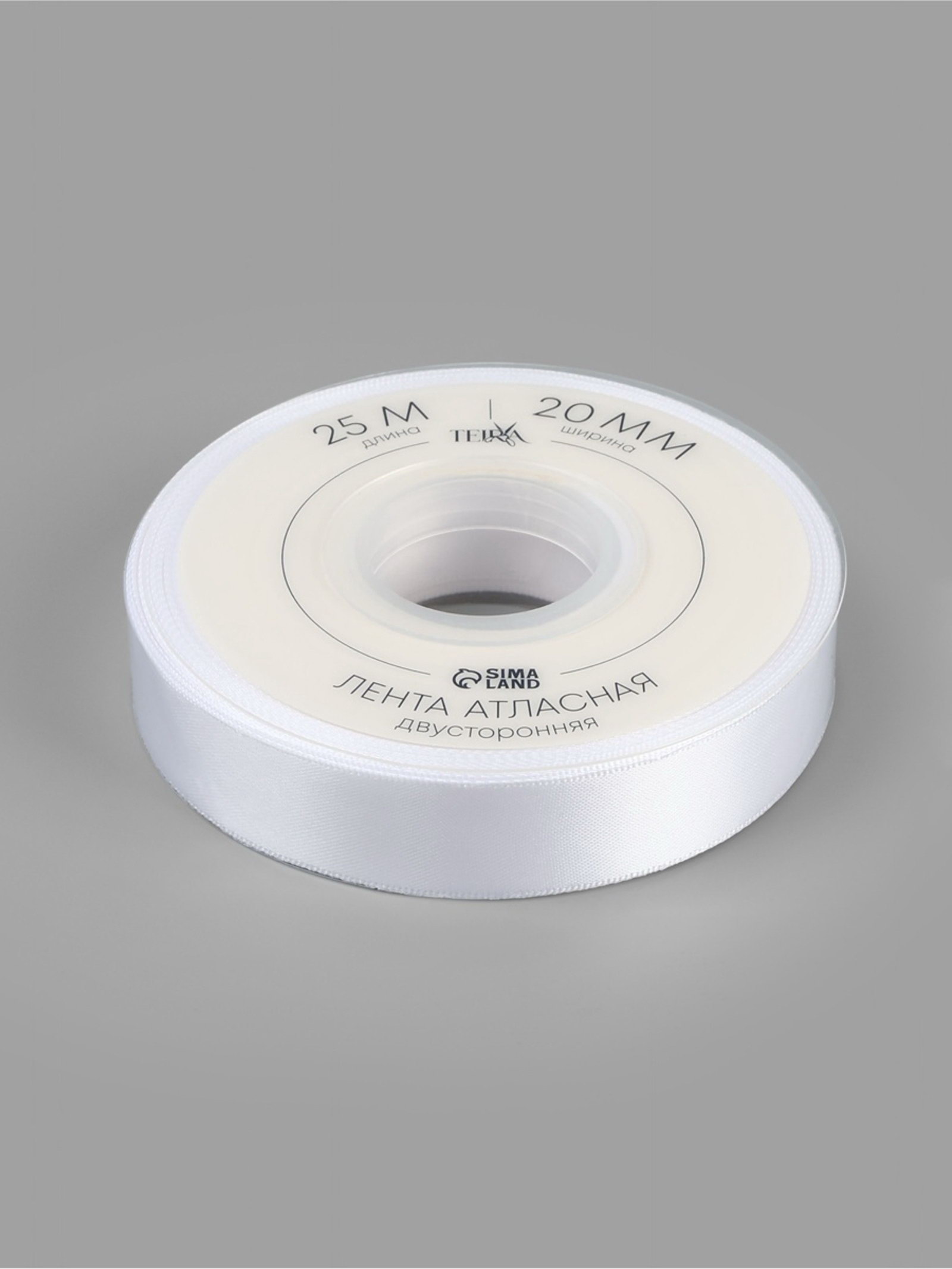 Лента атласная двухсторонняя, 20 мм, 25+-1 м, белая №0029, 10x10x2 см., TEIRA, Китай