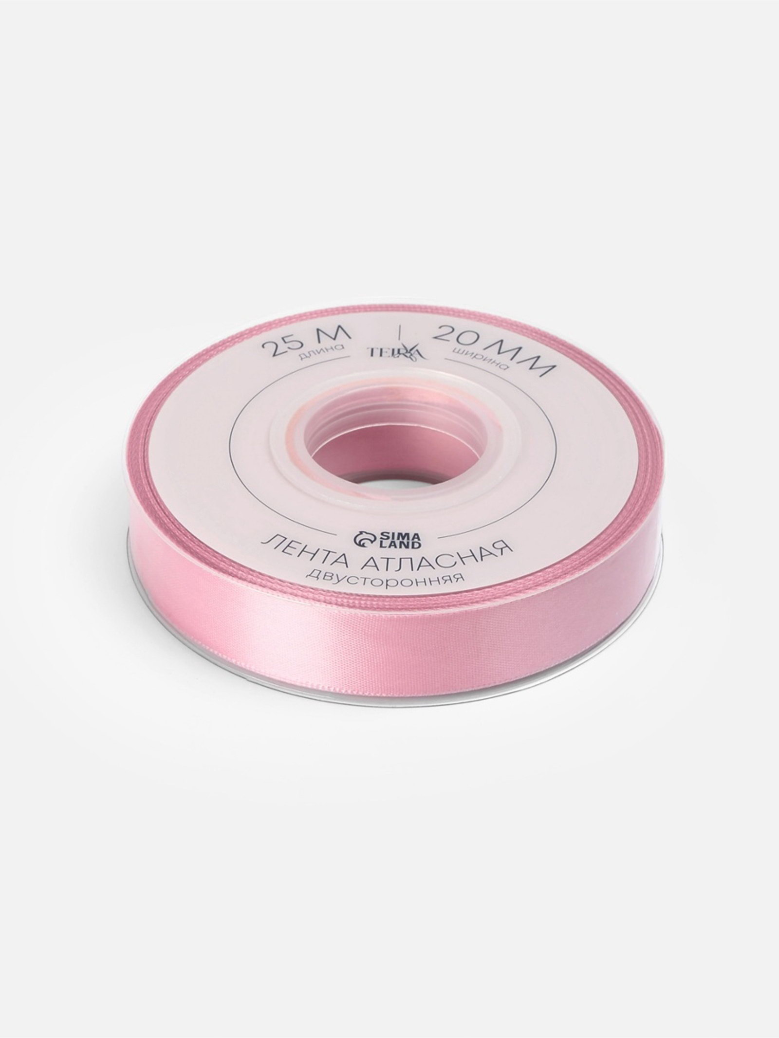 Лента атласная двухсторонняя, 20 мм, 25+-1 м, розовая №158, 10x10x2 см., TEIRA, Китай